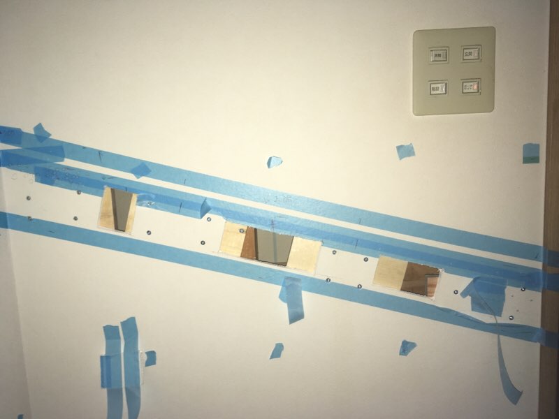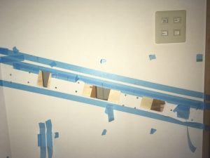 石膏ボードの裏側にべニアの板を入れて補強しました。
