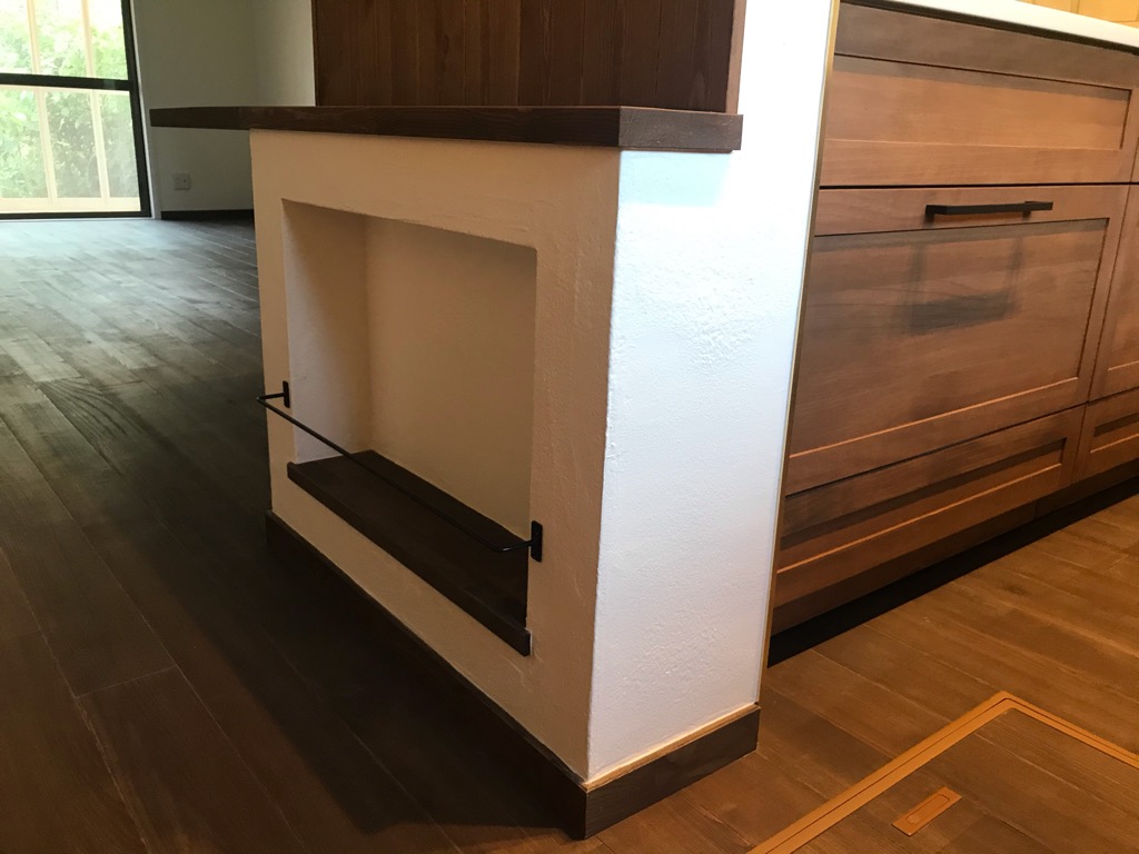 カウンターと腰壁の板貼り