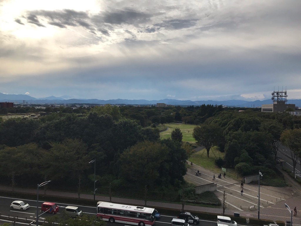 昭和記念公園を上から眺められたり、その先の稜線には富士山が見えます。