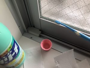 サッシの溝は外に水が流れる出る仕組みになっているので、気にせずじゃぶじゃぶ。