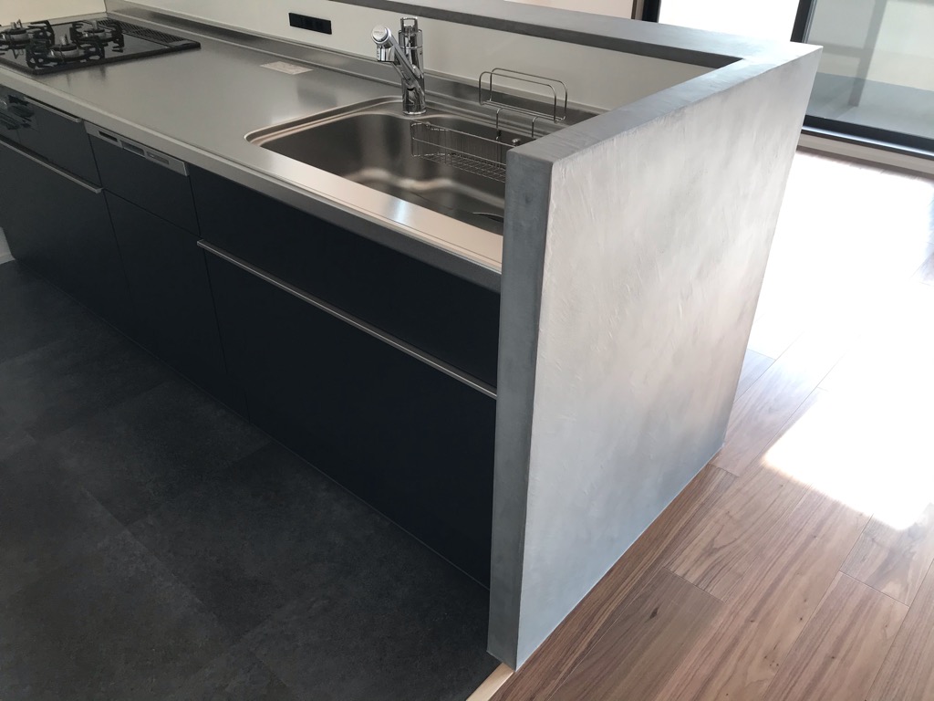 今回はモールテックスでキッチン壁を仕上げたお家です。