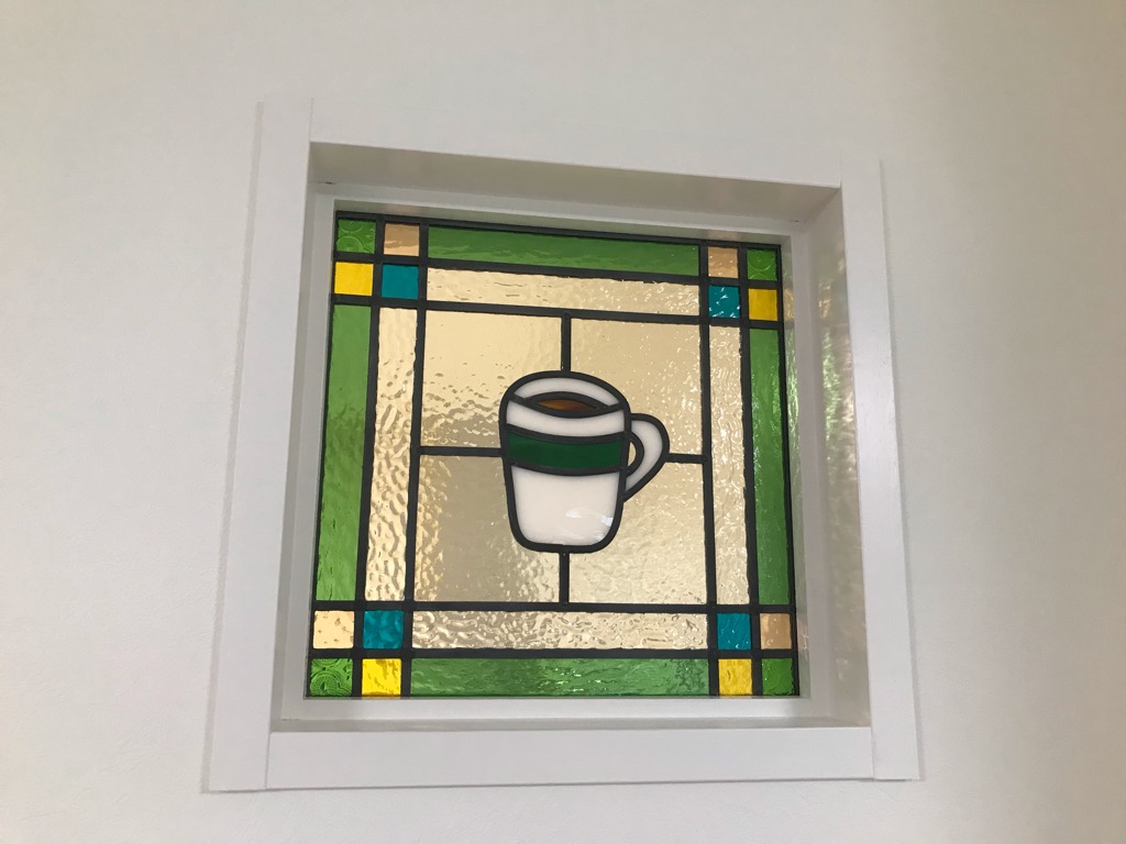 枠の中に、お客様に用意して頂いたステンドグラスを組み込みました。