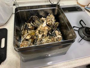 我が家では食べきれないので、お友達を呼んで牡蠣パーティーをしました。