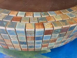 曲線のところは立上りのタイルとそろえて、