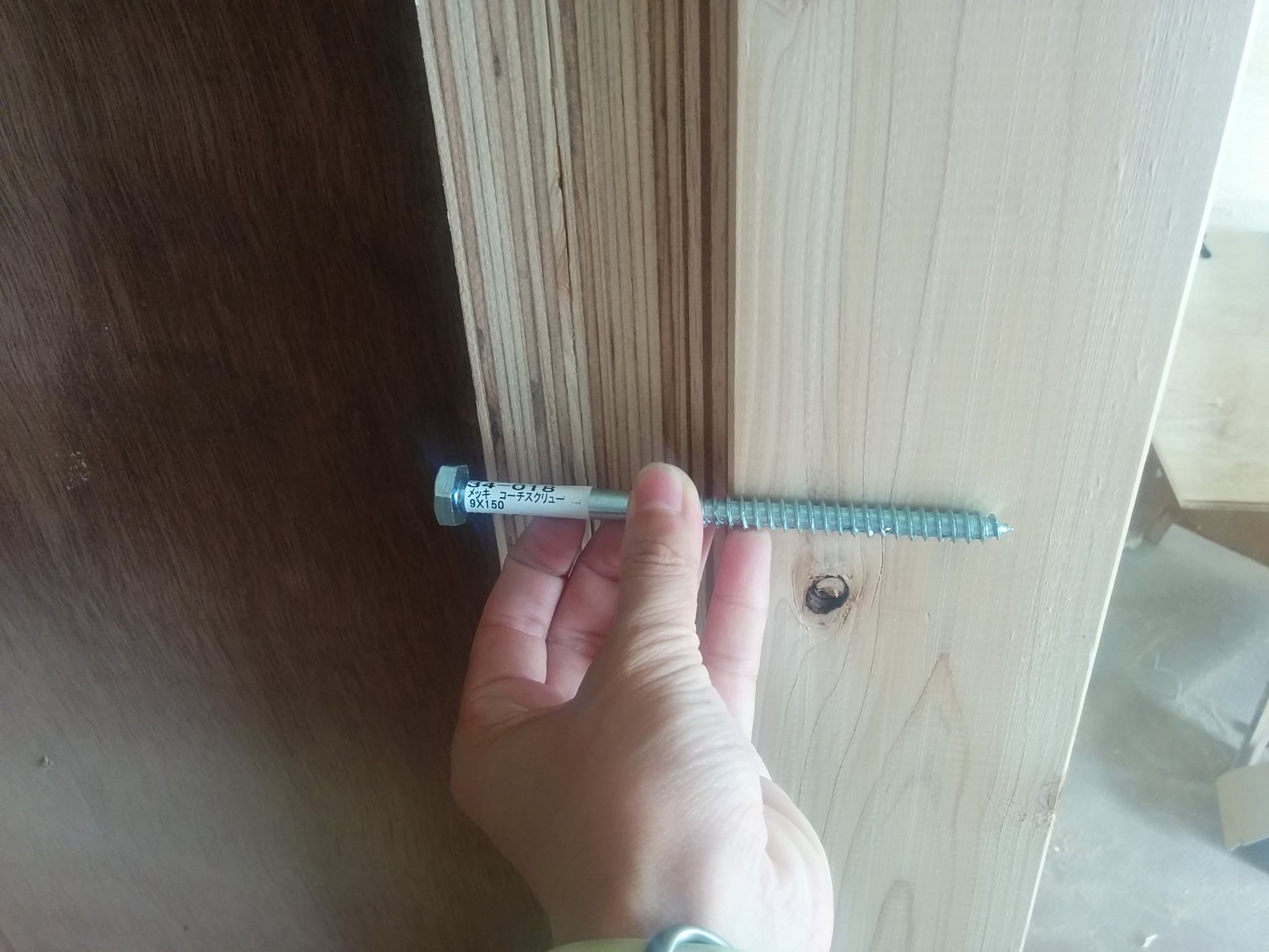 後ろからは太いビスでしっかりと固定しました。