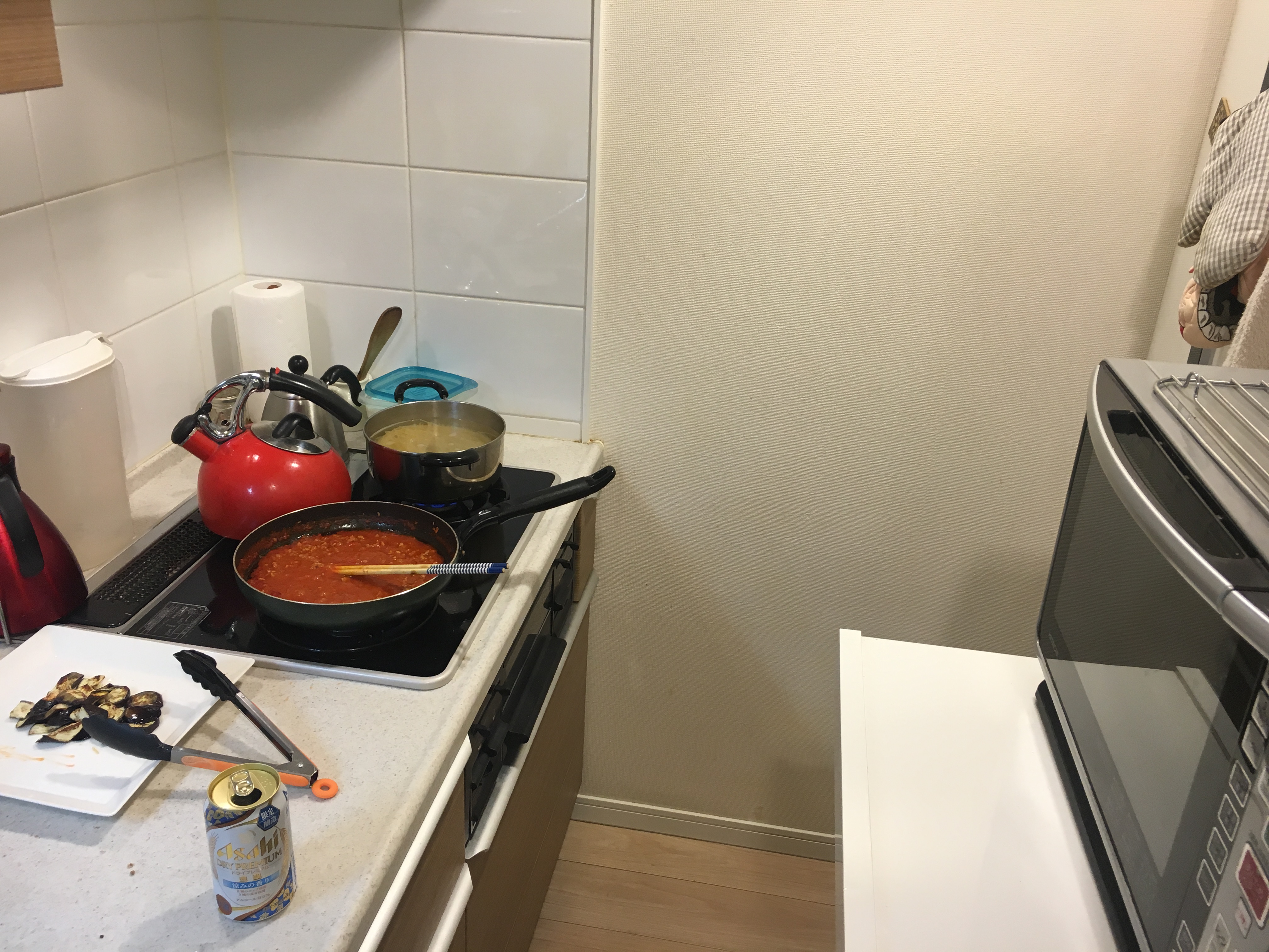 この日はパスタを作りました。一応ソースから作ります。