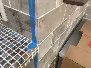 タイルの小口がレンガ色のタイルで角のところが浮いて見えてしまうので、