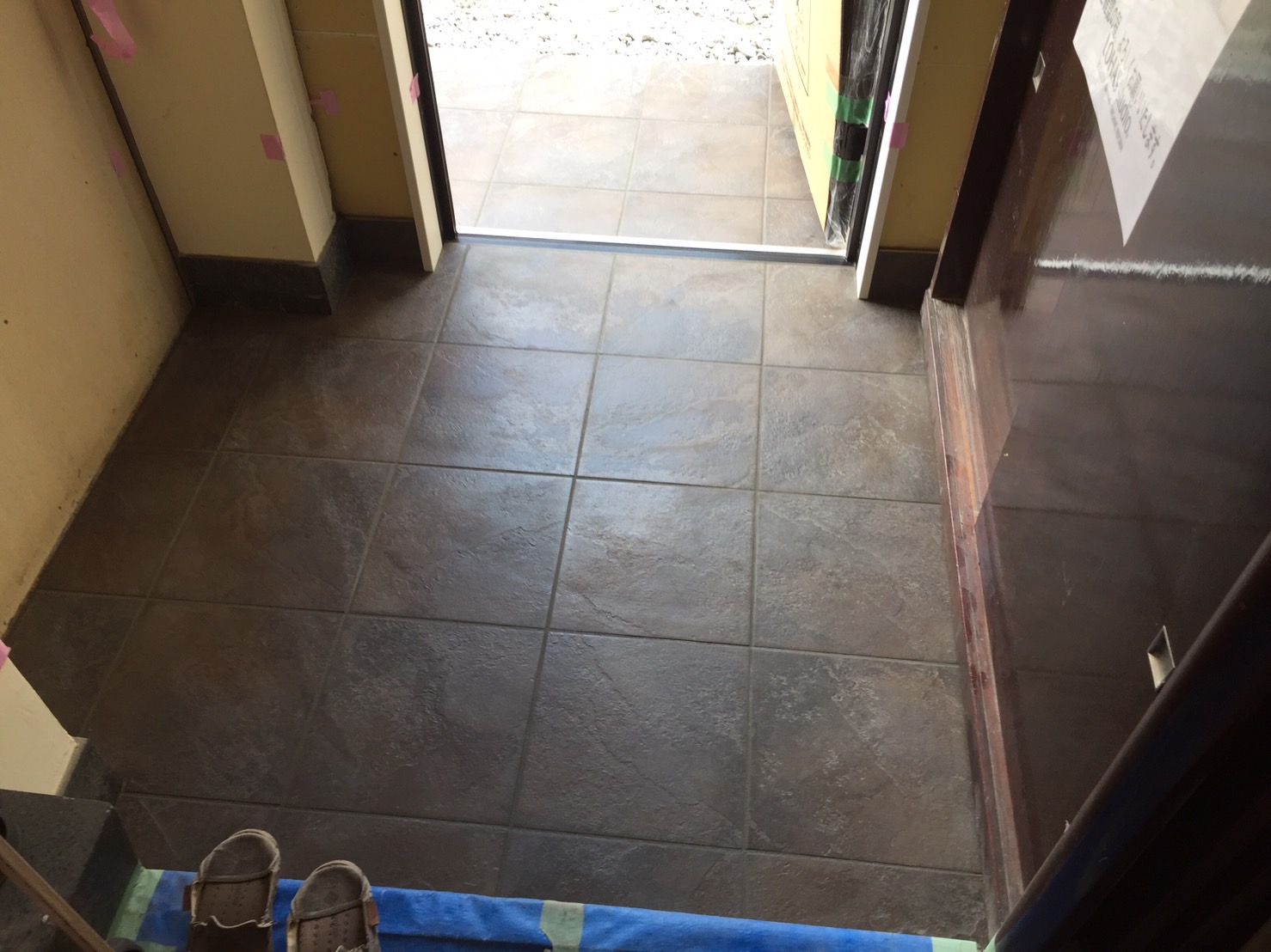 お施主様がスペインより取り寄せ下さったタイルにて施工しております。