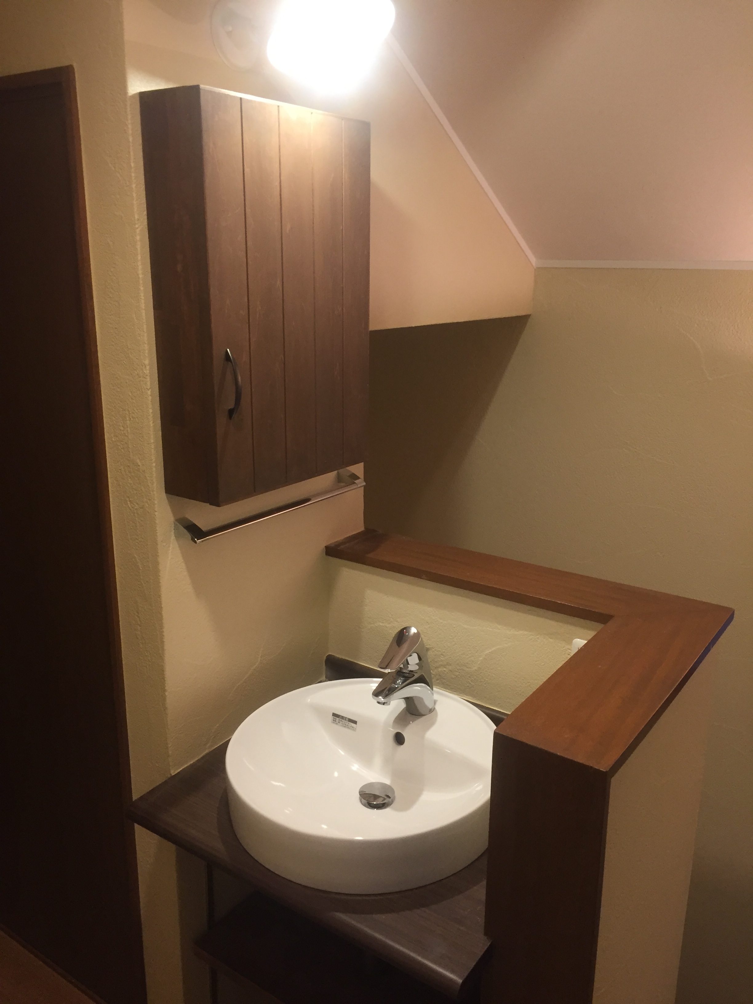 大宮区T邸のリフォーム現場の様子です! 洗面所に収納棚を取付けました。 ミラーを付けれれば完成です!