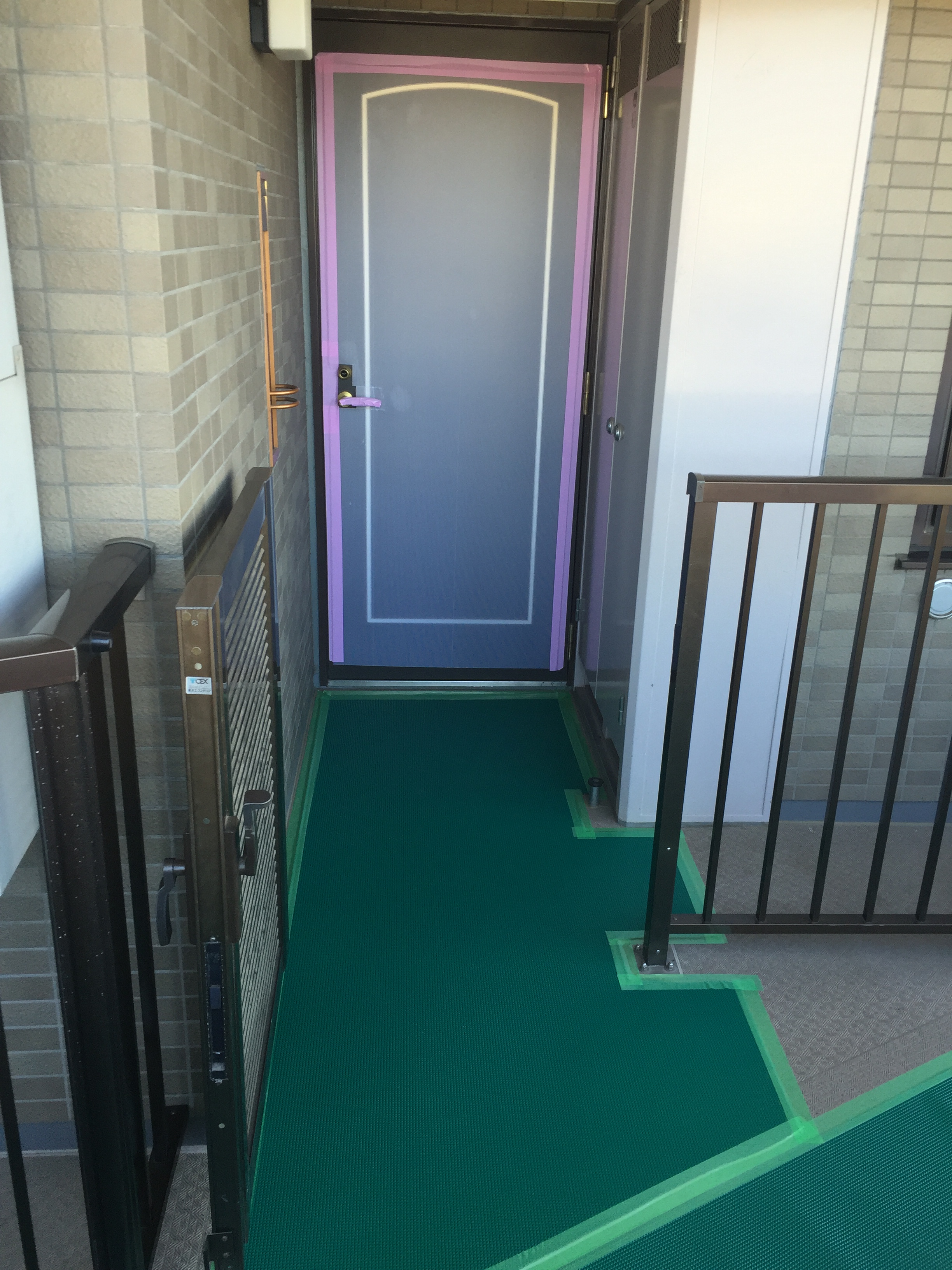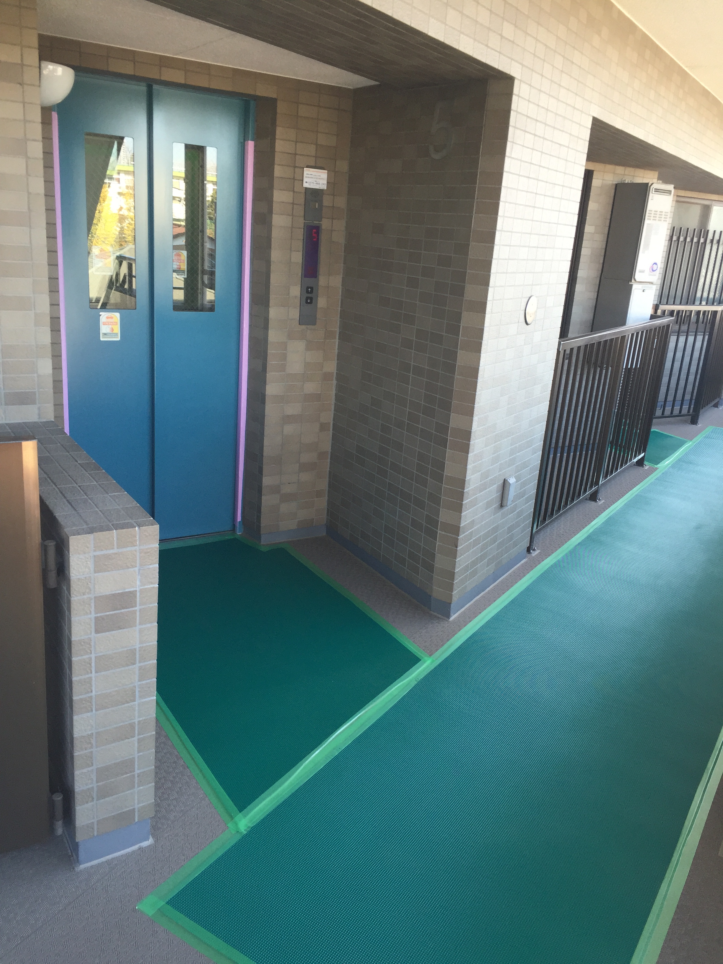 今日マンションリフォーム現場着工でした! 工事中は通路やエレベーターなど共用部分は このような養生を行います。