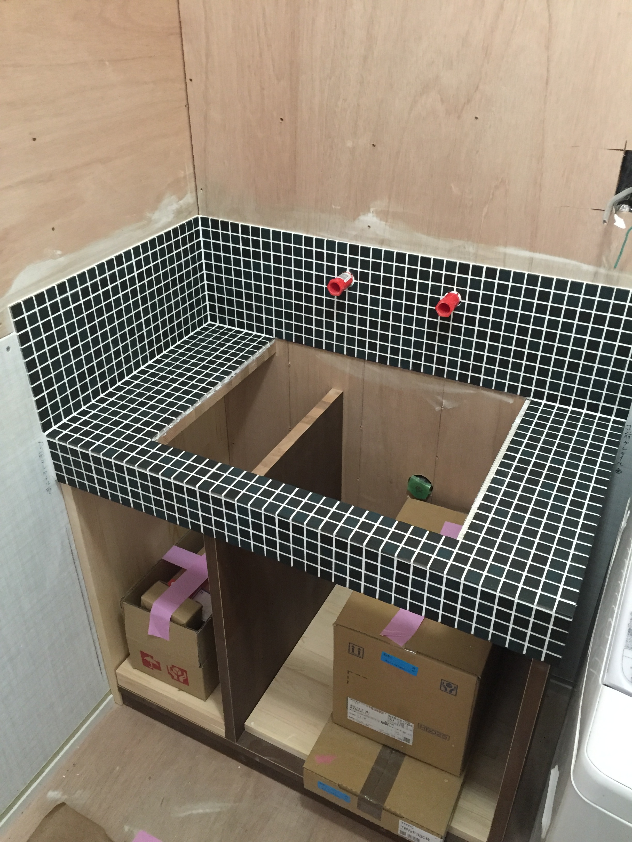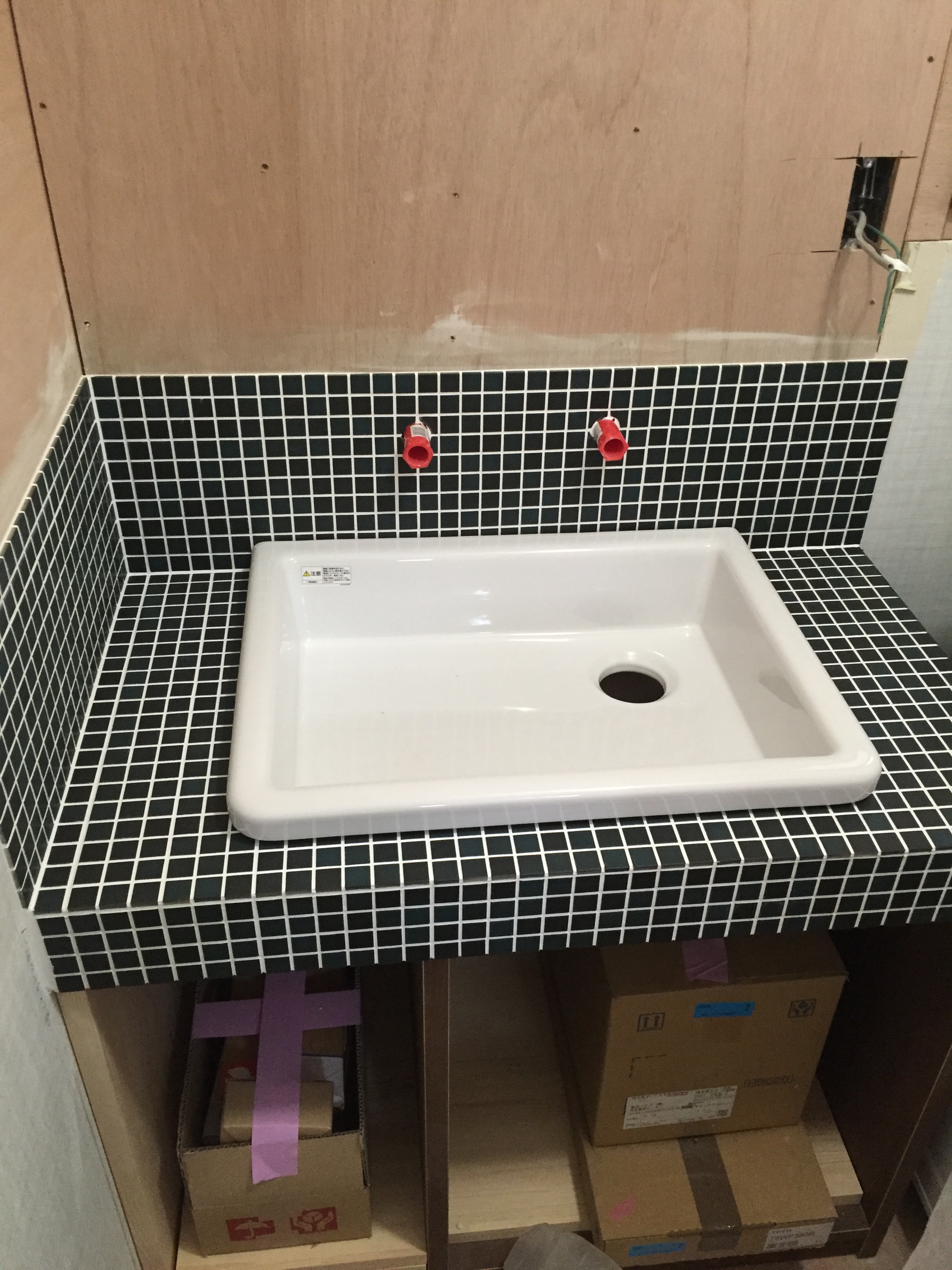 前回はタイル貼り前の下地の状況をお伝えしました。