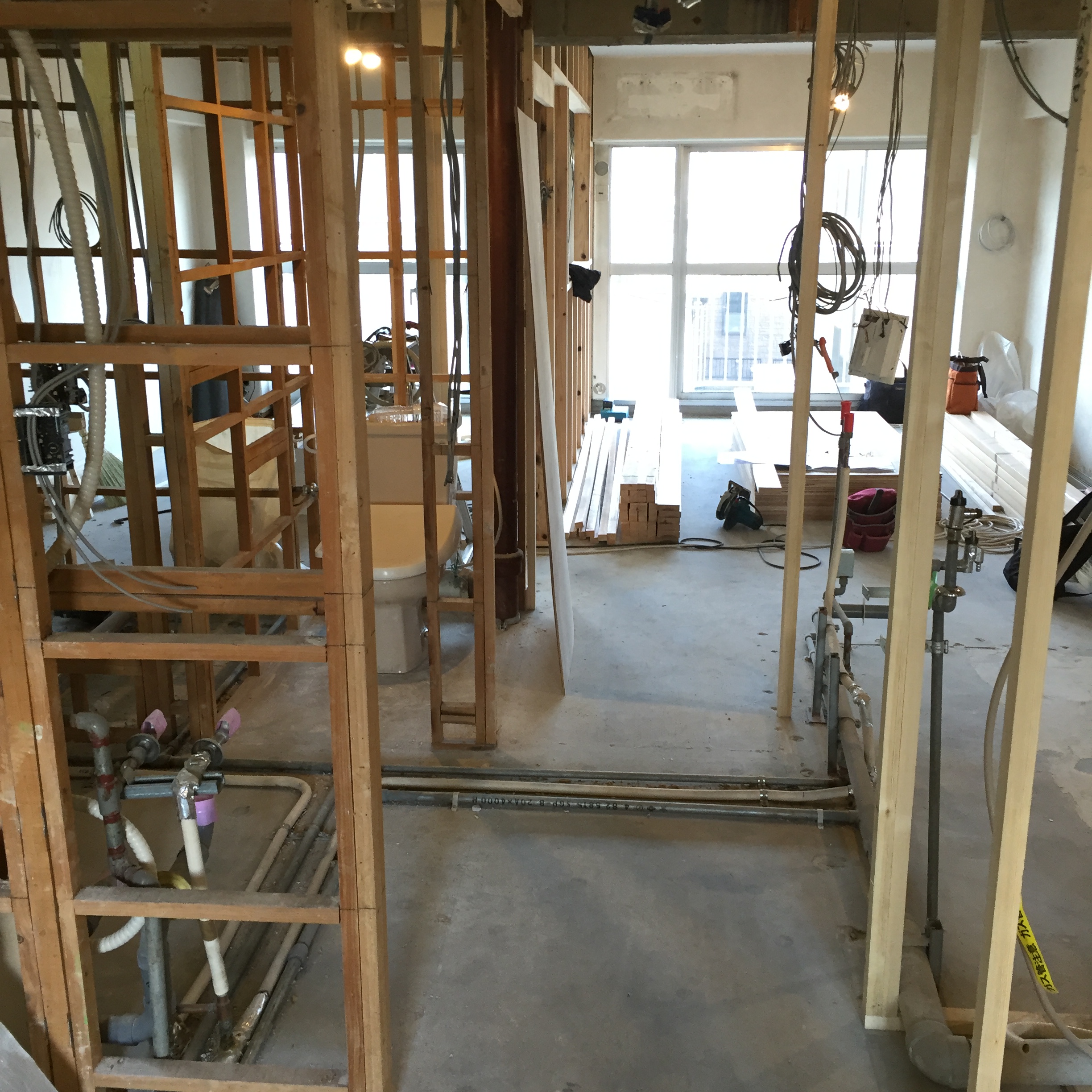 間取り変更に伴い図面を基に墨出しという作業を行い、