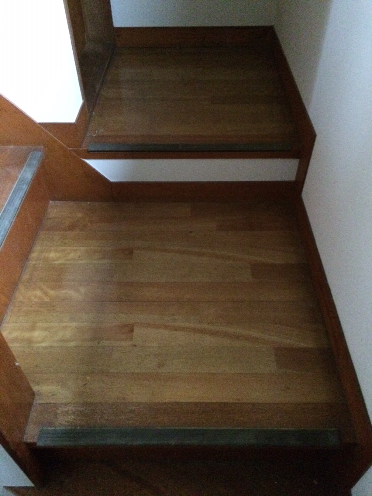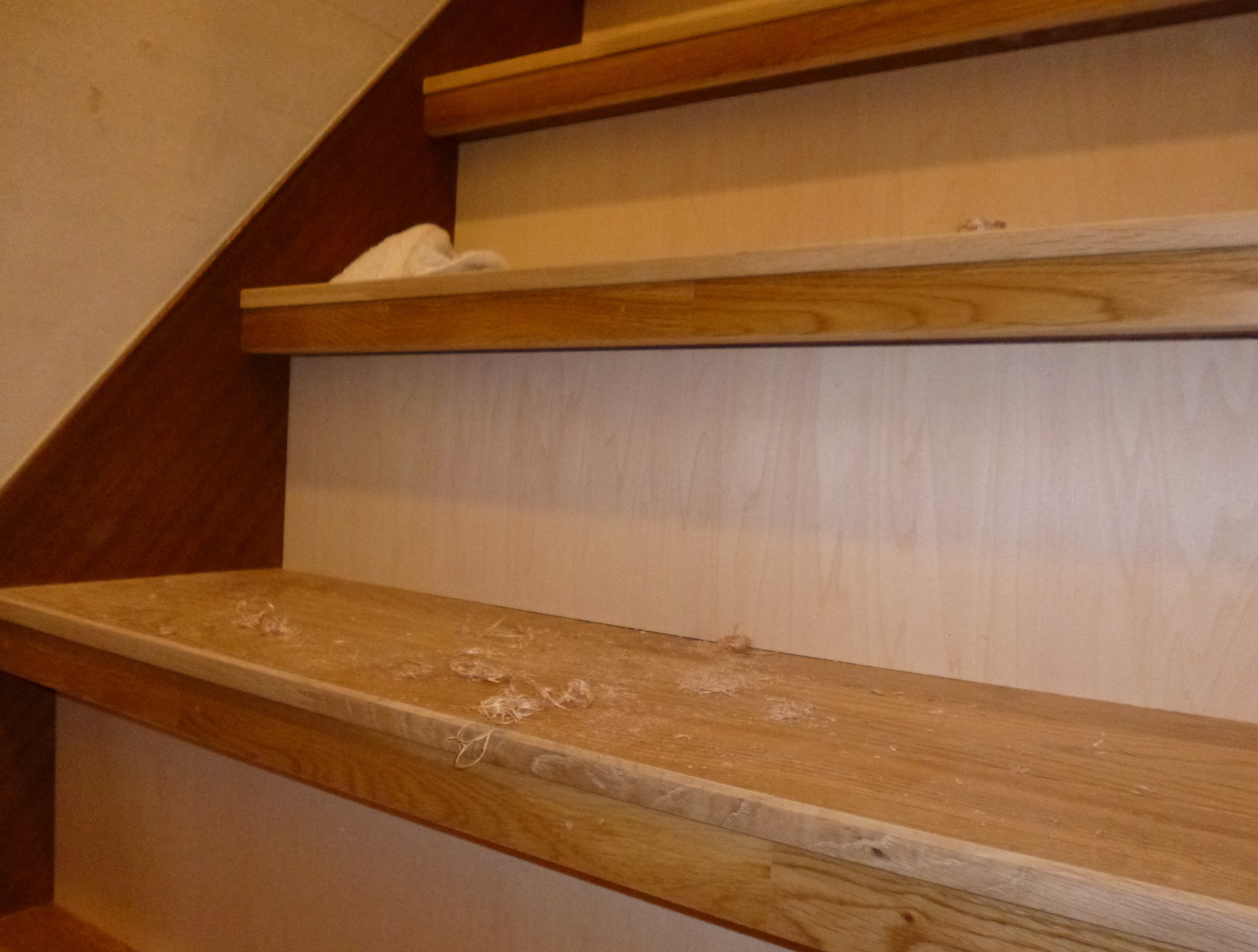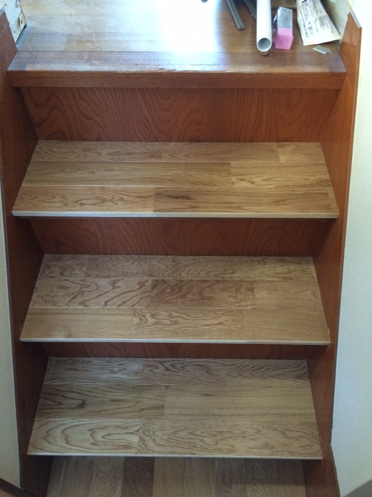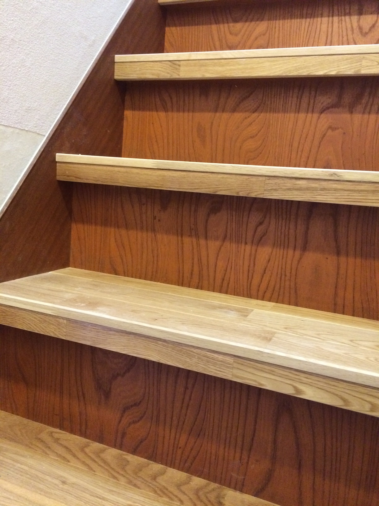 既存階段の踏板へ無垢フローリングを上張りしました。