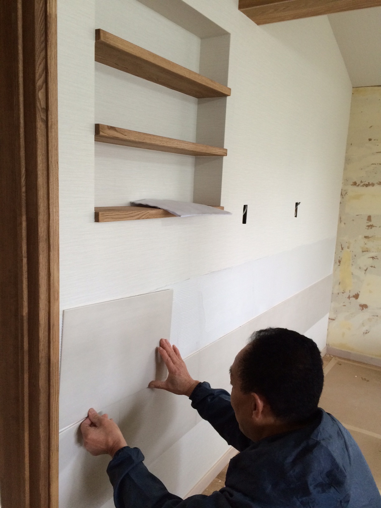 “続いて、エコカラットを水平を確認しながら貼っていきます”