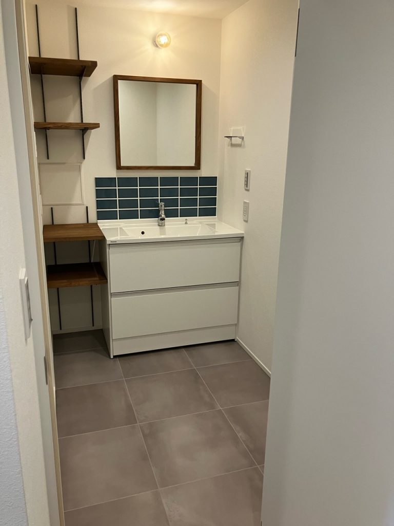 今回はマンションですでにリノベ済みの物件に、 購入されたお施主様のご希望に合わせた内装の工事を行いました 洗面脱衣所では、 洗面のミラーを無垢の木を用いて造作 左手に可動棚をこちらも無垢材で作成し...