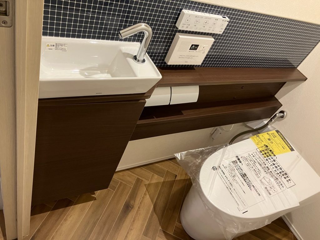 マンションの改装です 間取り変更で玄関脇に洗面を設置しました スッキリおしゃれに仕上がりました ...