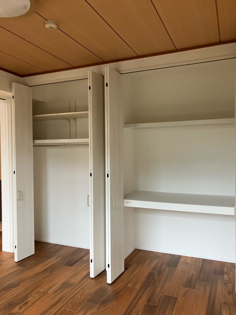 戸建ての2階の広い洋室に、水廻りスペースを新設しています こちらはシャワーユニットで、 半畳ほどの大きさでお部屋の隅にスペースを取りすぎずに設置できました ...