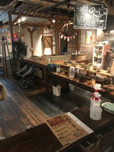 壁はブリックタイル、配管をあらわしにしていて弊社の雰囲気になんか似ているかも…