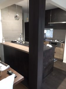 キッチン取り付け後の施工、天井・壁の珪藻土との取り合いにより工程を組むのに苦労しましたが、仕上がり・お客様の喜ぶ姿を拝見し、苦労が報われた気がしました。