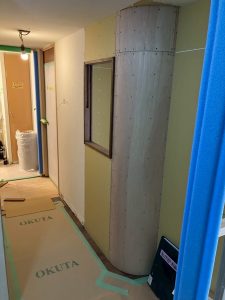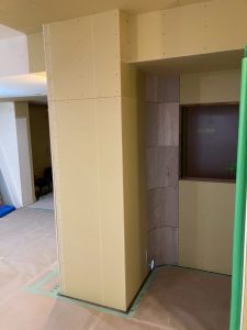 ボードとフローリングも貼り終わり、建具枠も付きました。