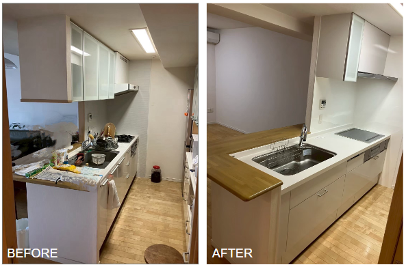 こんにちは!津田沼店の安部です。 以前行ったシステムキッチンのリフォーム事例をご紹介いたします。 【LIXILシエラS】 船橋市マンション 下がり壁を撤去することで、リ...
