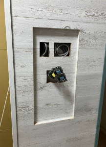 本日は、進行中の現場にて素敵なスイッチニッチが完成したので紹介します。 4mm厚の木板を壁に貼るデザインだったのですが、その際にスイッチニッチの中にも木板を張りました。 使用した素材はニッシンイクスのリアルパネルホワイト...