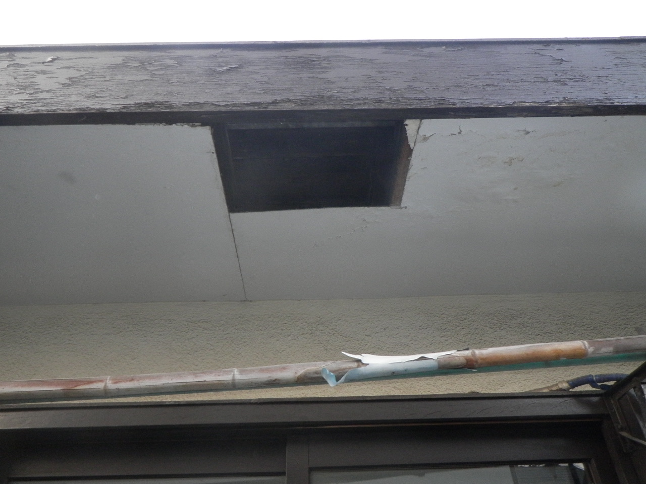 まずは一部軒天を開口して、内部を目視できる状態にします。