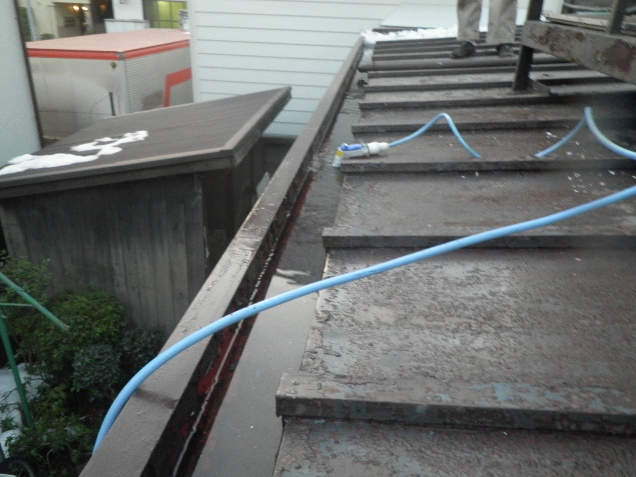 下の写真の右上灰色の部分が雨樋(内樋)です。