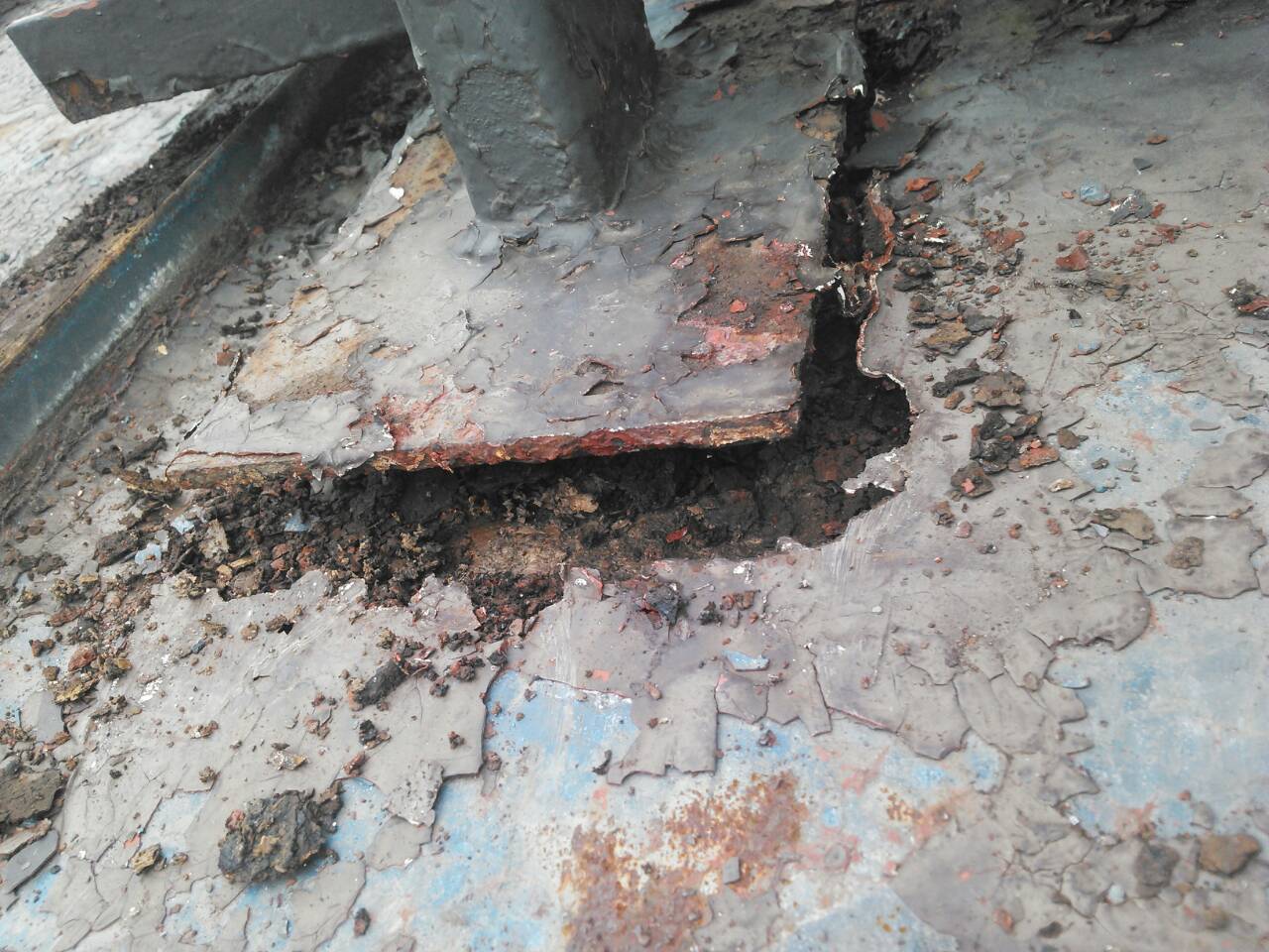 バルコニーの脚の部分も漏水し板金が腐食していました。