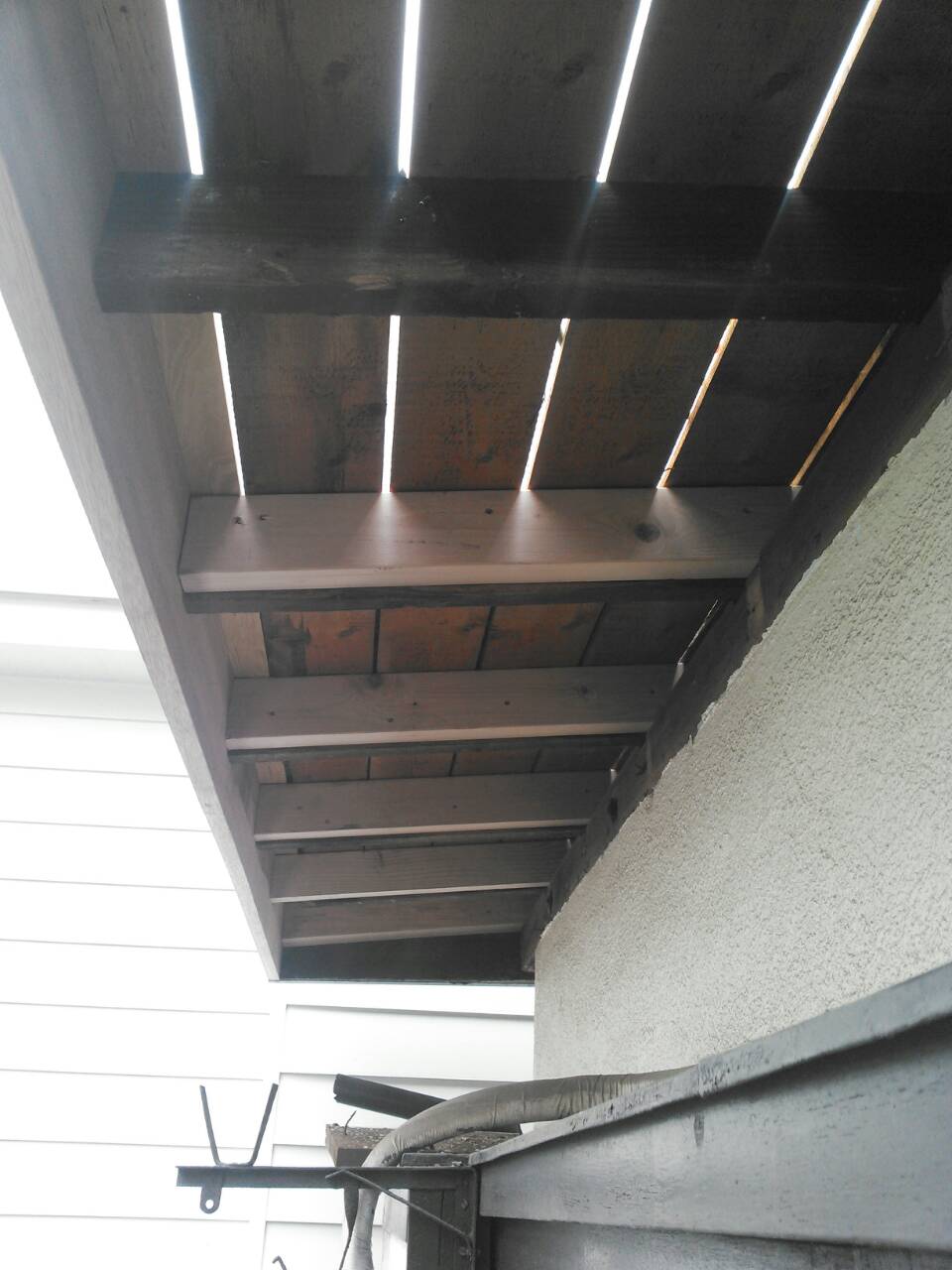 裏側は、腐食部分を削って、新しい材木を抱かせました。