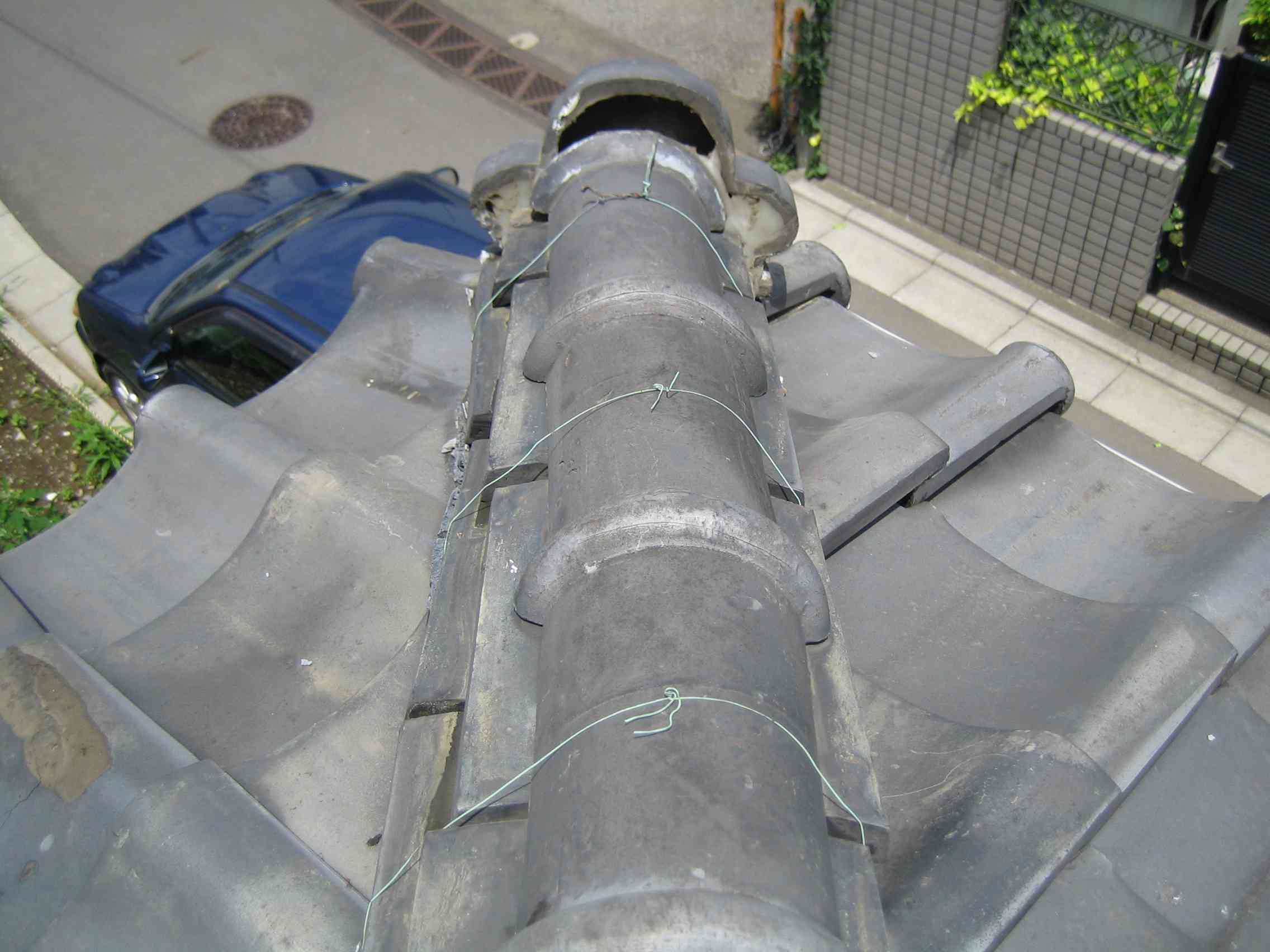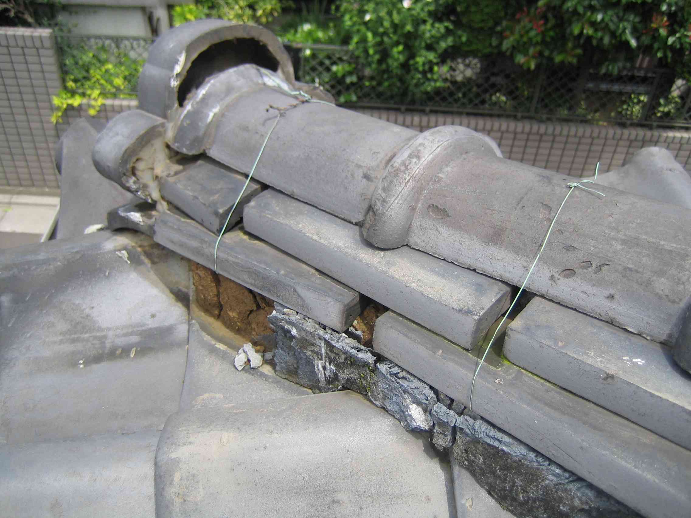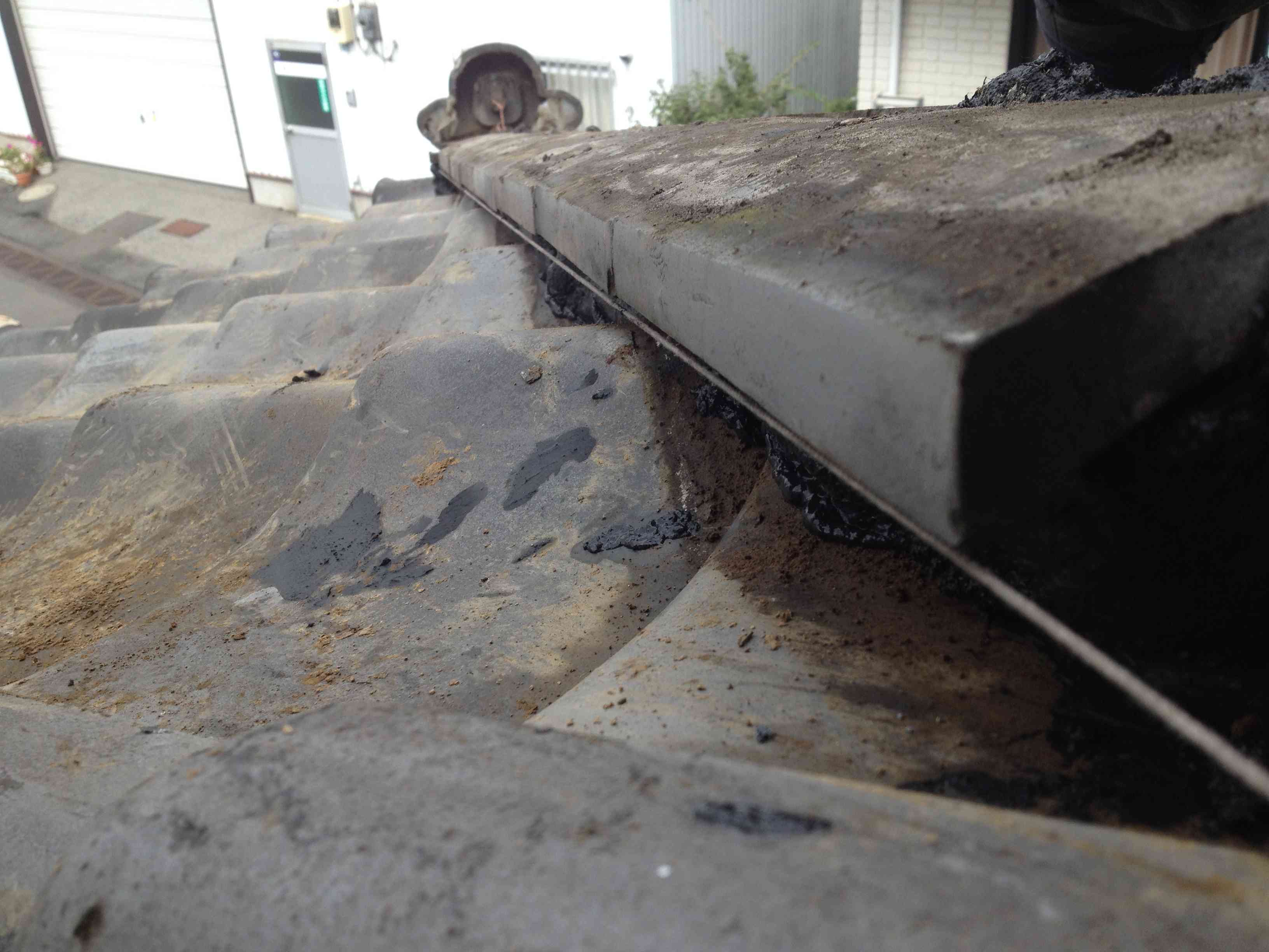 経年劣化や地震の揺れの影響でしょうか、丸瓦が下方にズレ落ちています