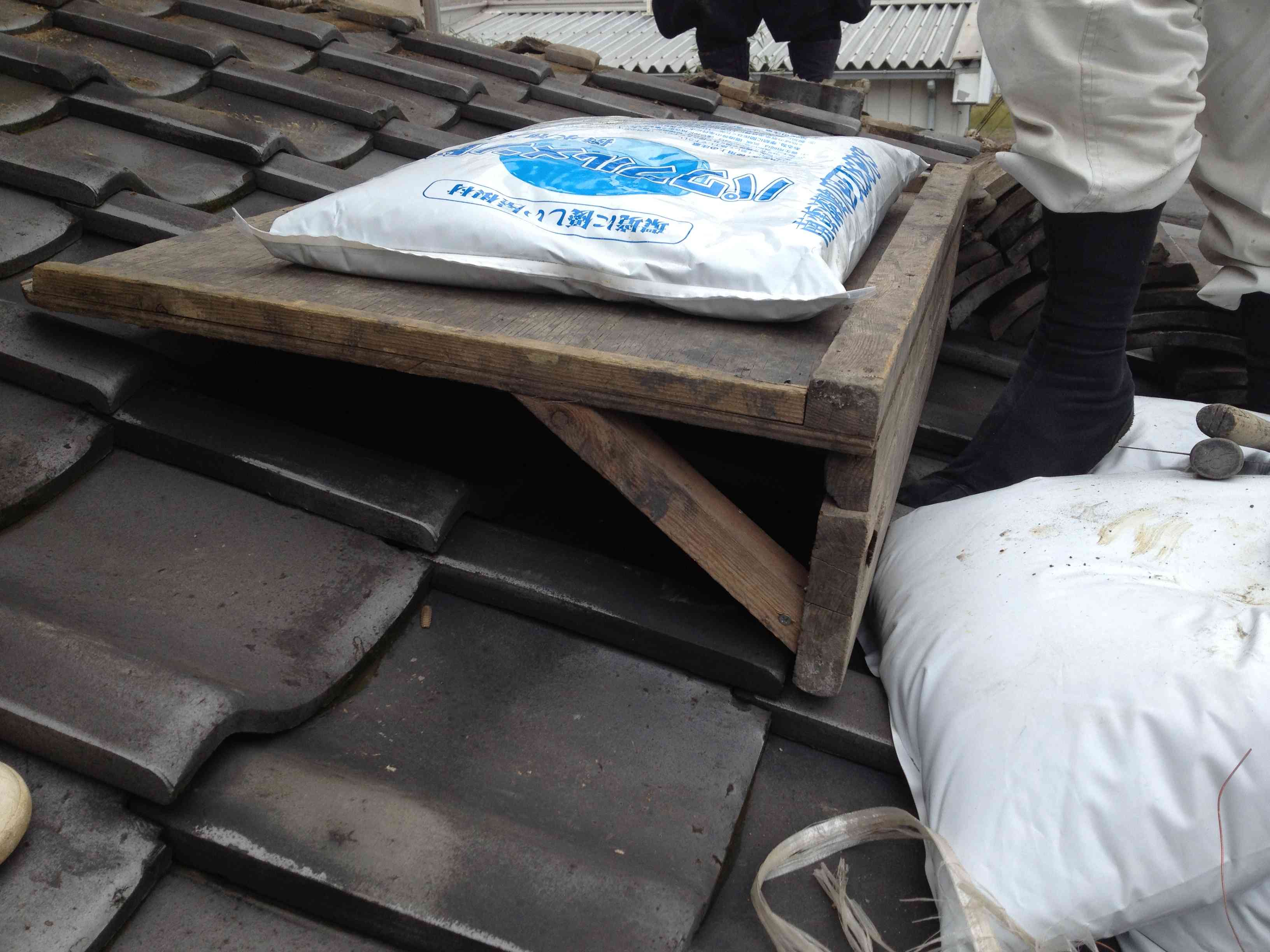 水糸に合わせて一直線にのし瓦を乗せていきます