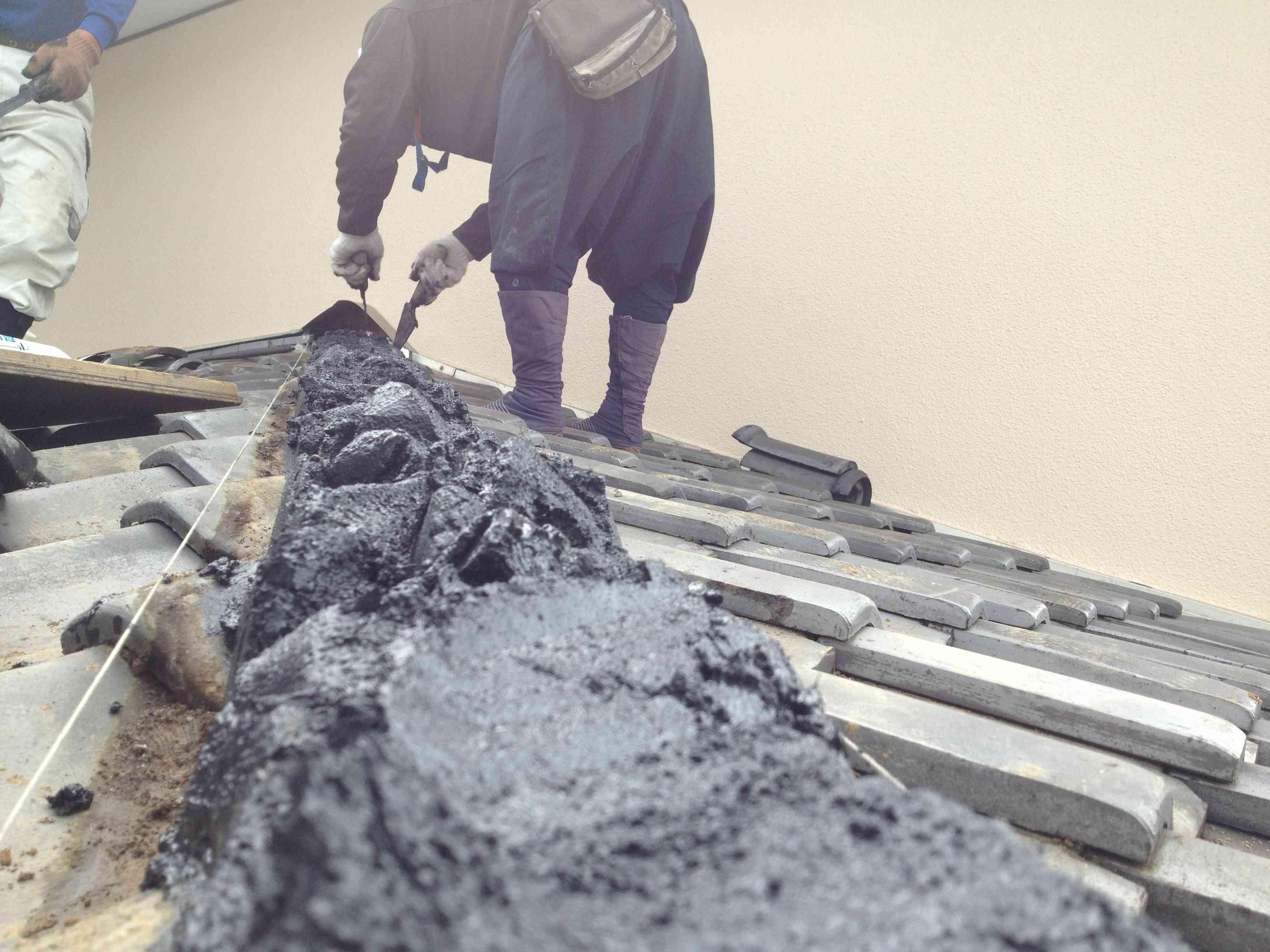 今日はさいたま市南区で丸瓦の積み直しを行いました。