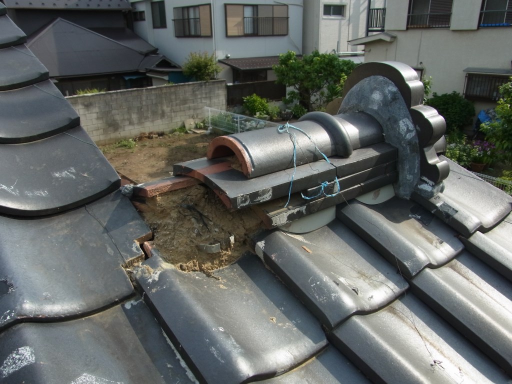 内部の土も流出しているので、この場合は一度棟瓦を解体し、
