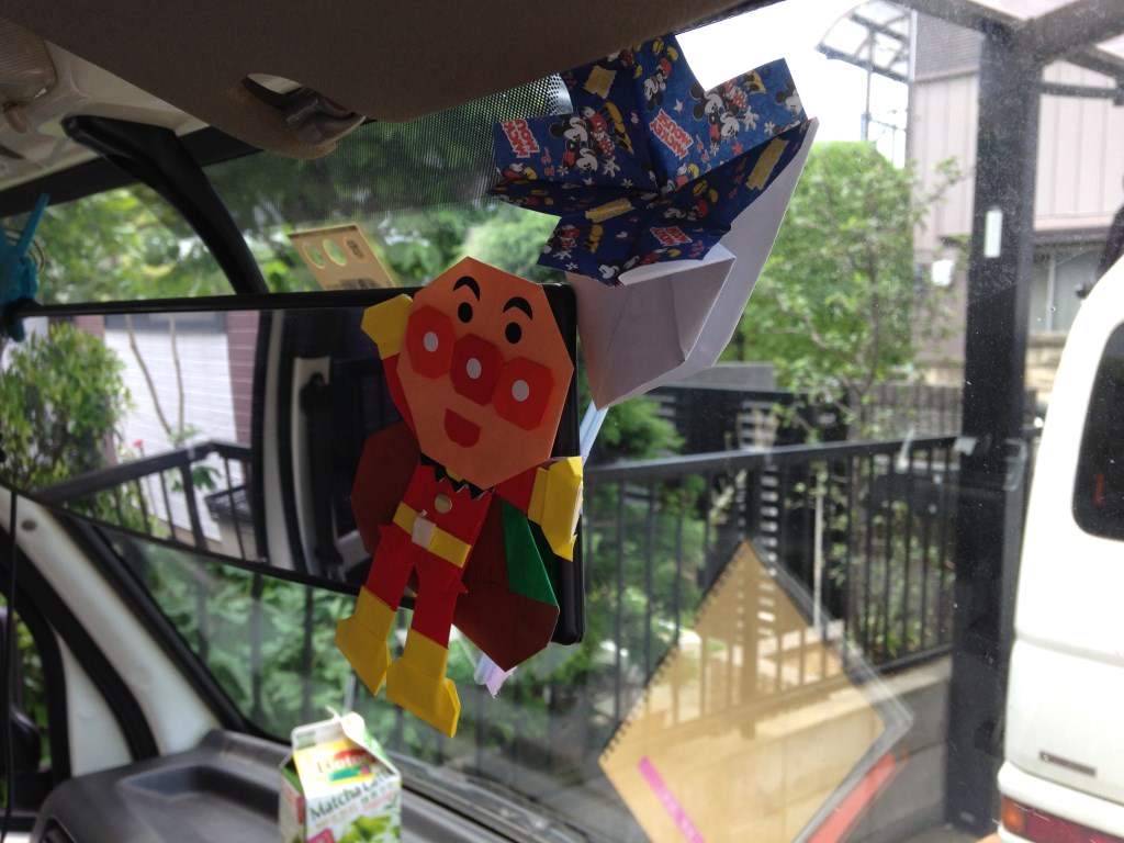 「車のミラーのアンパンマンどうしたの?かわいいねっ!」