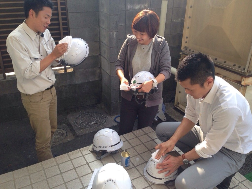 いつも頑張ってもらっている職人さんのヘルメットが汚れてきてしまったので、キレイにします♪