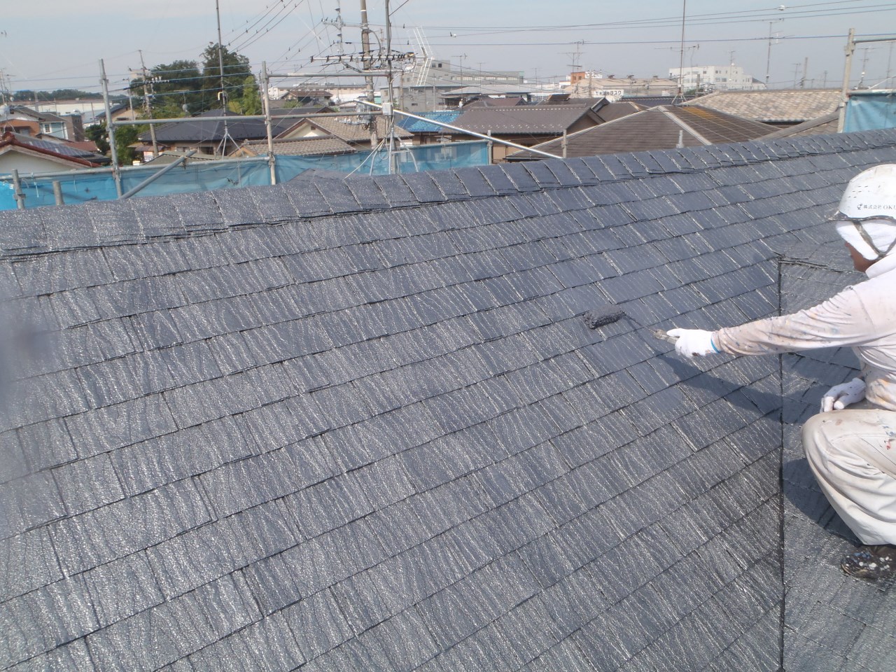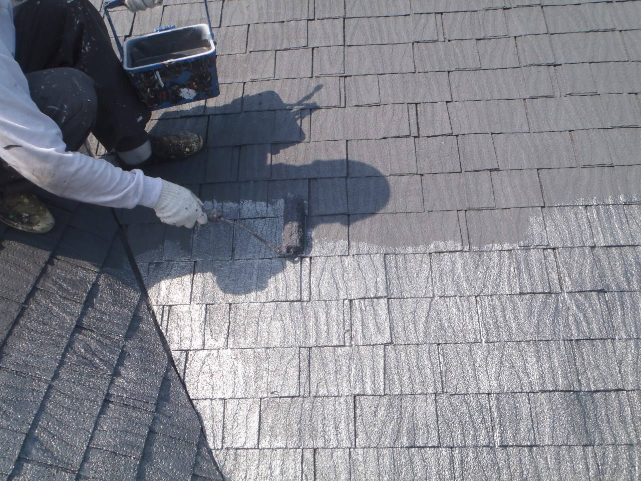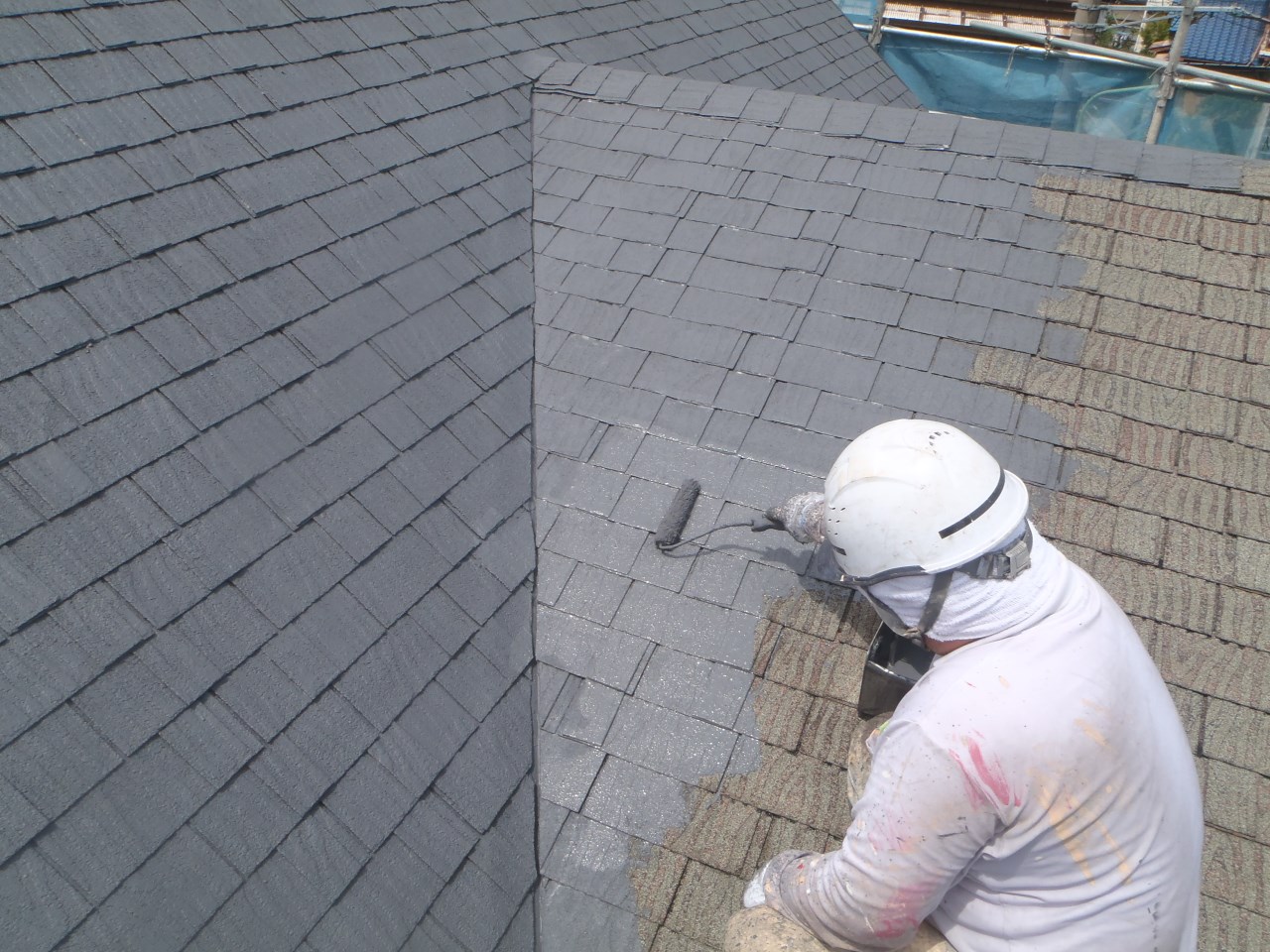 アスファルトシングルは下地処理として、瓦表面の砂地をしっかりと固め仕上材の定着を良くします。