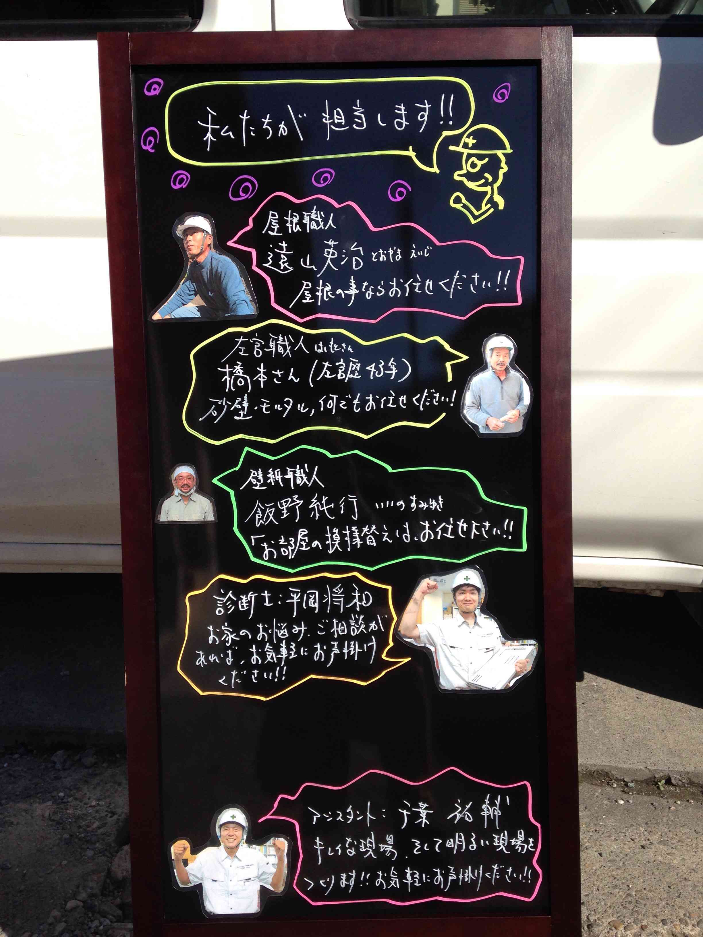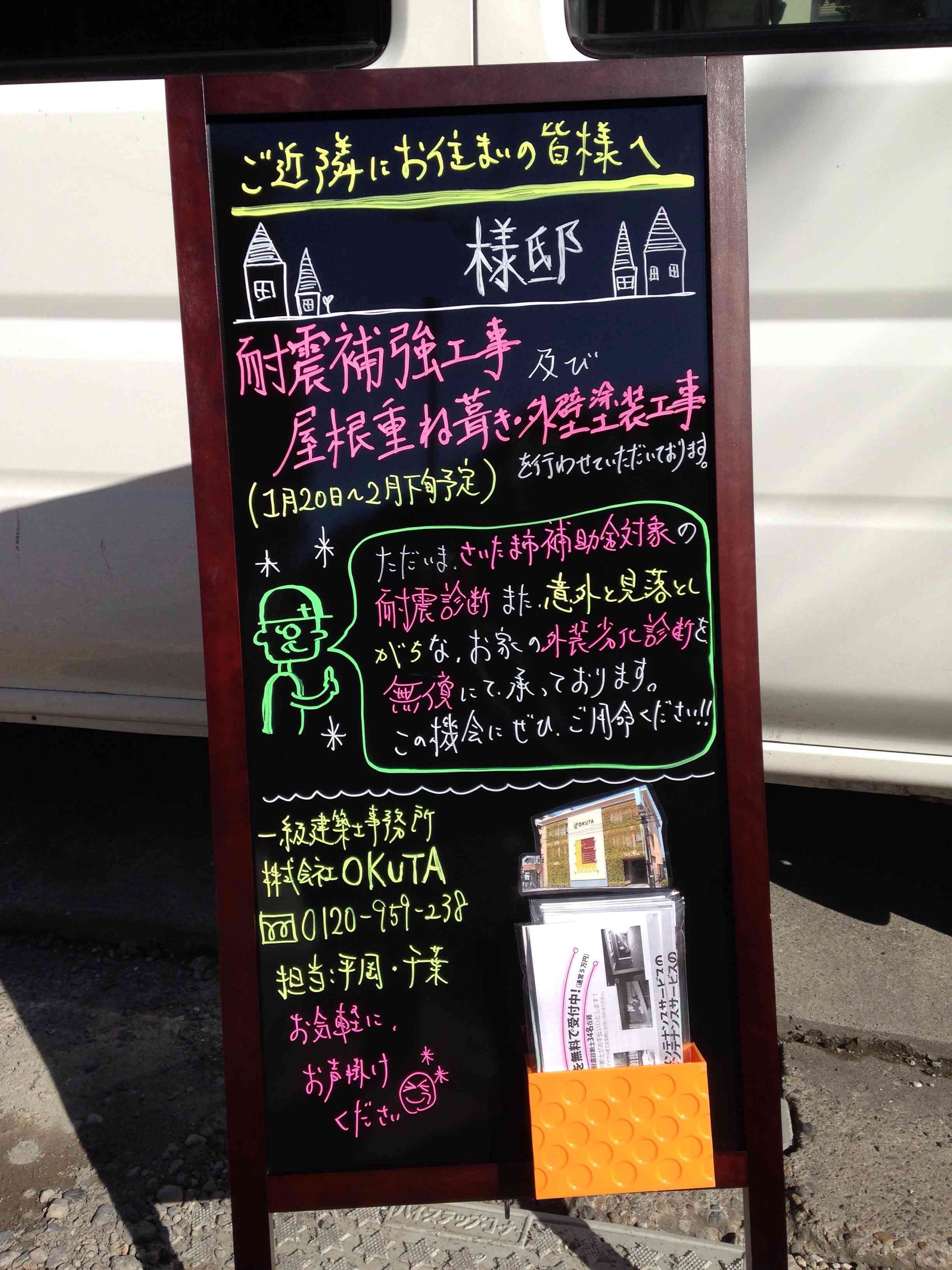 今日は自分も現場を手伝います・・・現場看板を設置しました