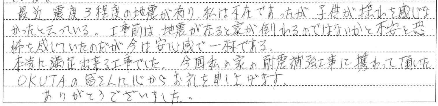 耐震補強工事を実際に施工されたお客様のアンケートの中には、