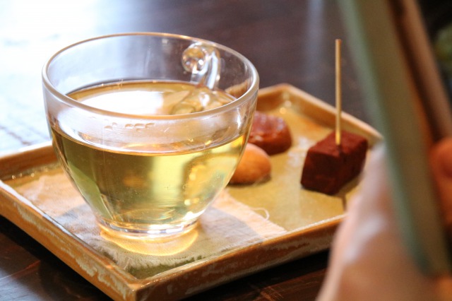 楽の蔵1階 創作フレンチレストランCheztomo.でオリジナルで作っていただきました小菓子を添えて。