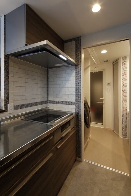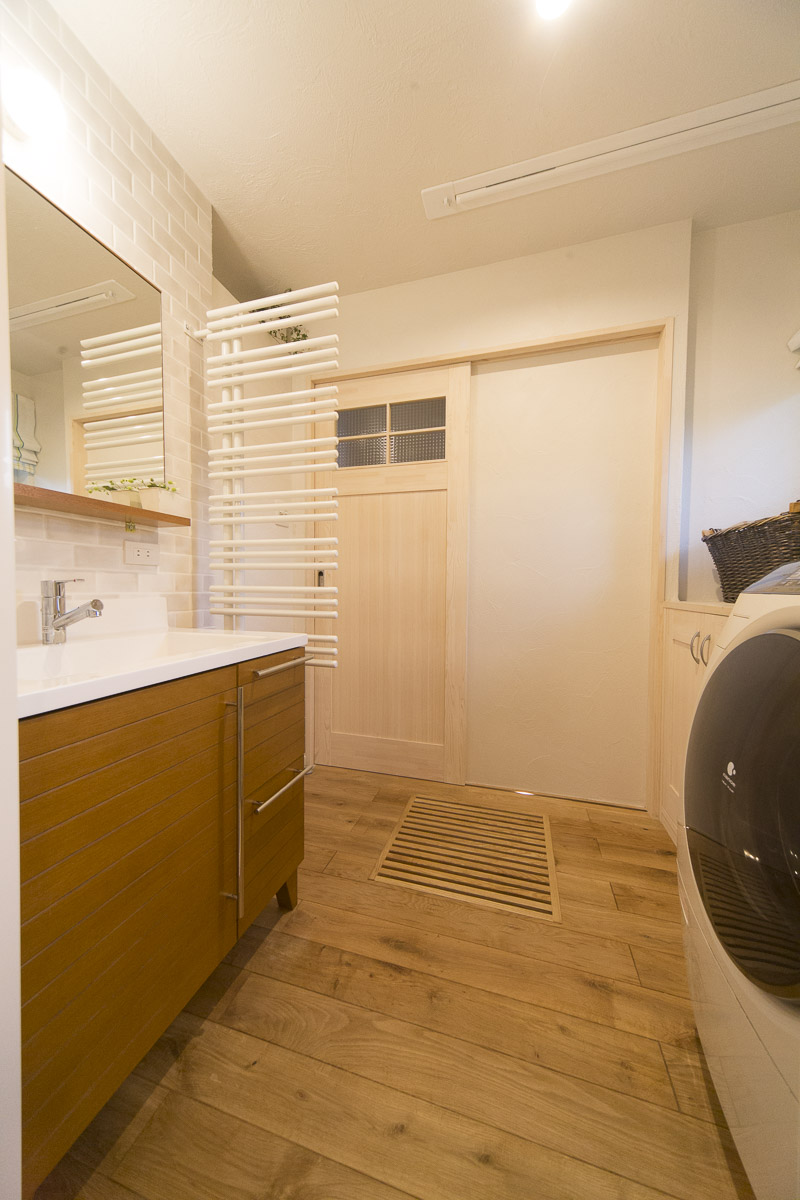 キッチンの並びにある洗面脱衣室 家事動線も最短♪