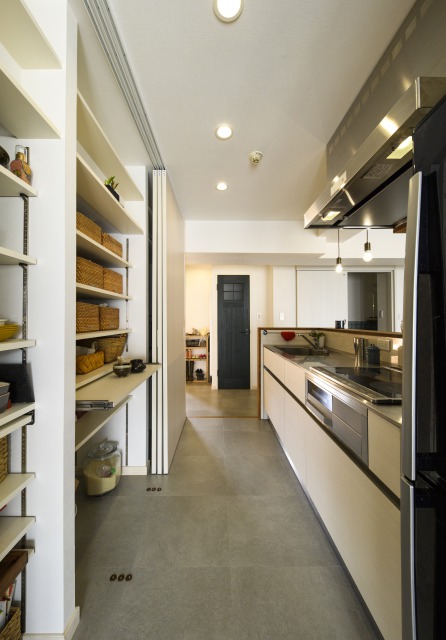 一大収納量 3枚引き戸を右に左に開けたり閉めたりと