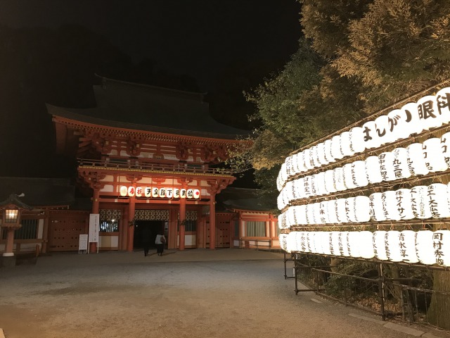 神社境内や参道周辺に、縁起物の熊手や食べ物など露店が立ち並び、福を望む多くの人々で夜遅くまで賑わっています。