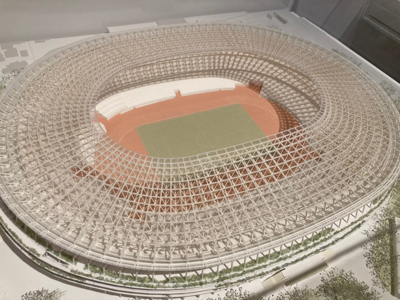「隈研吾展」では、新国立競技場の模型展示もあり