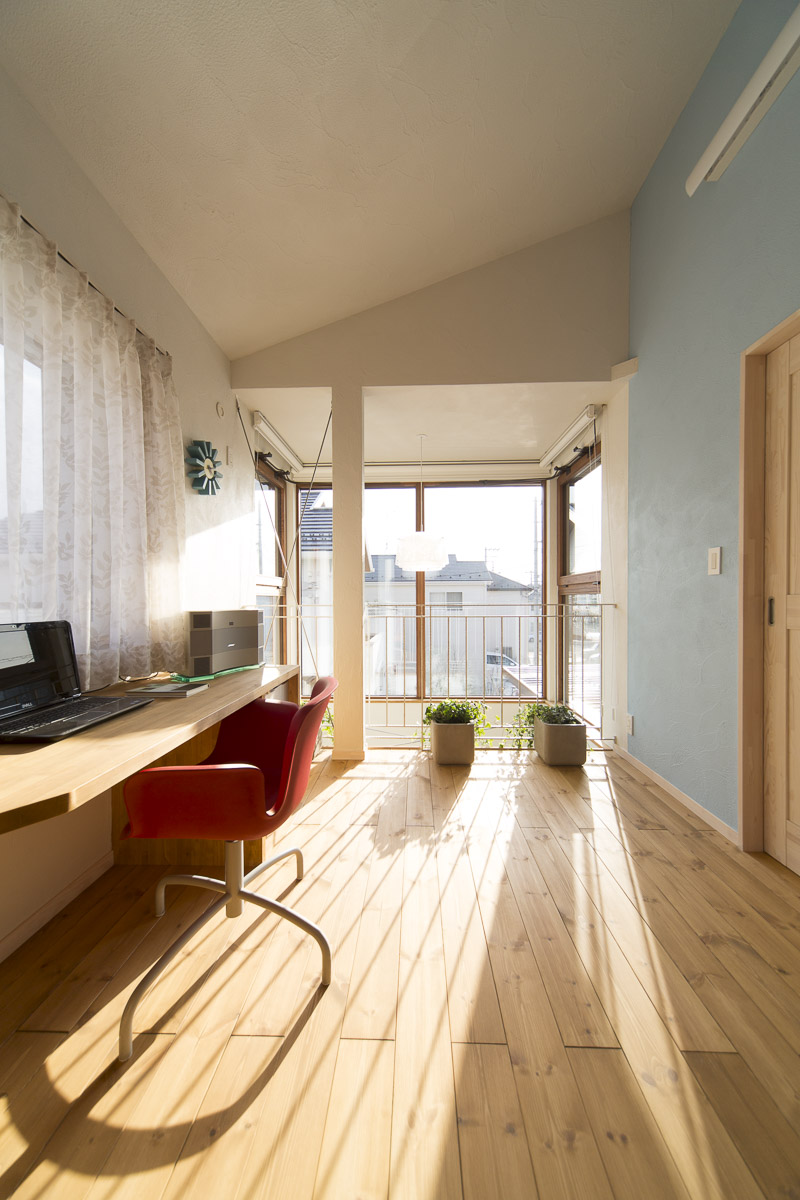 西北に玄関を持つK様邸では、家の中で最もその味方となる方角 南西に吹抜けサンルームを配置。
