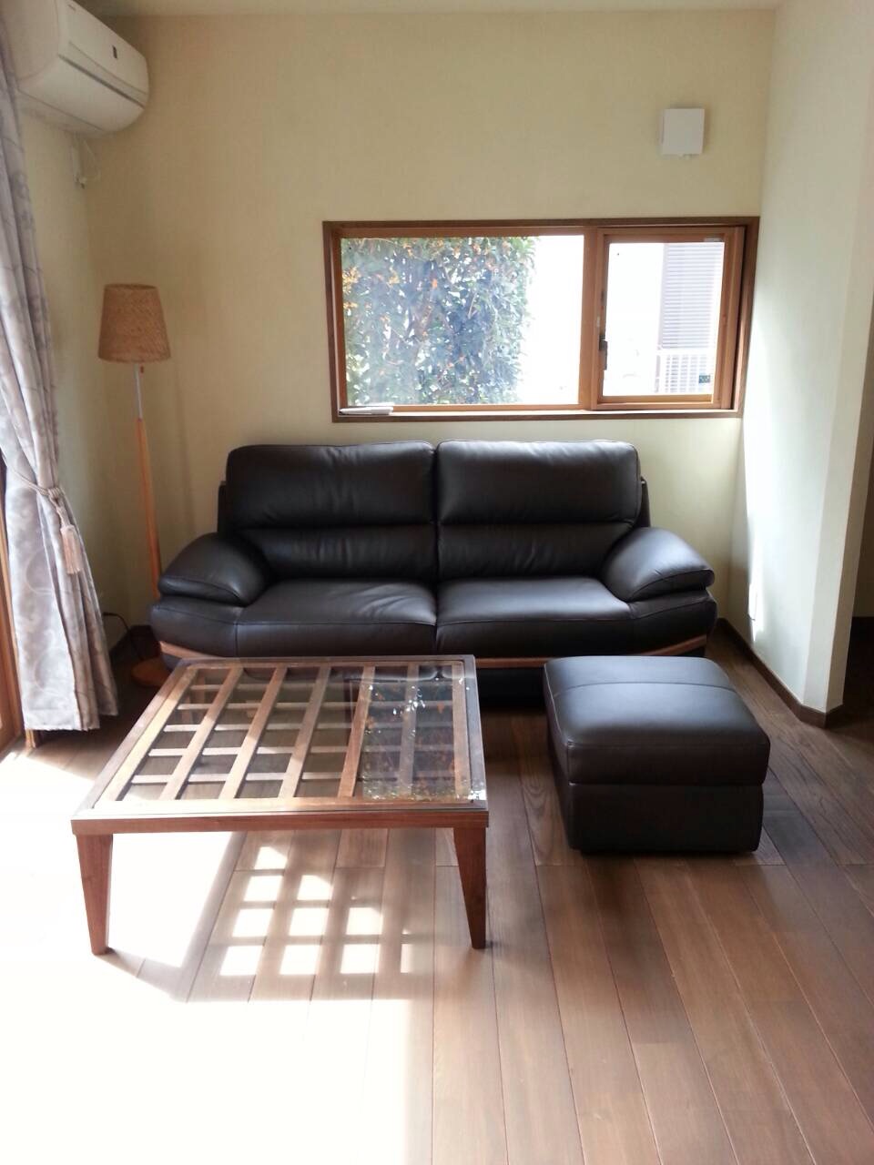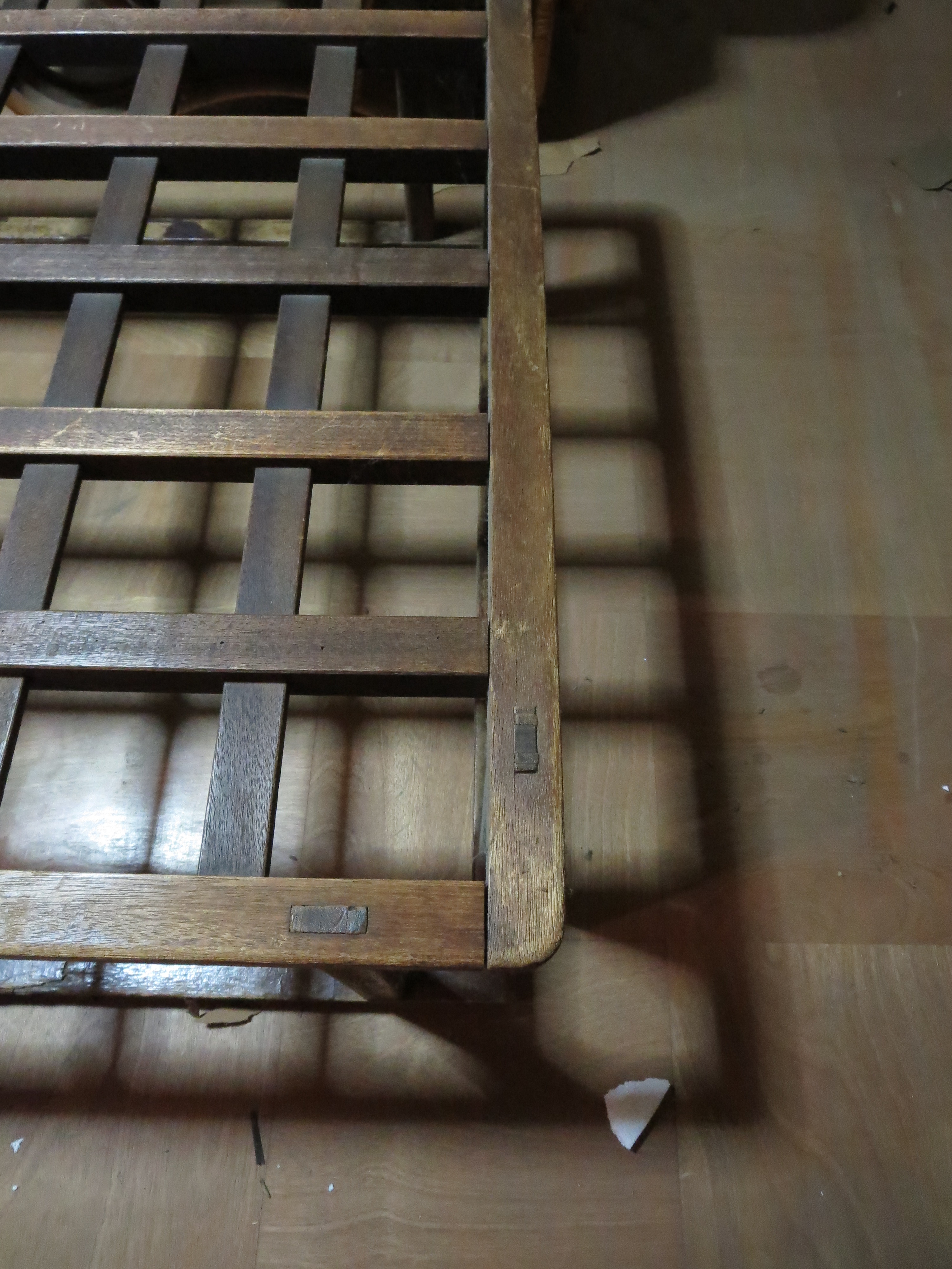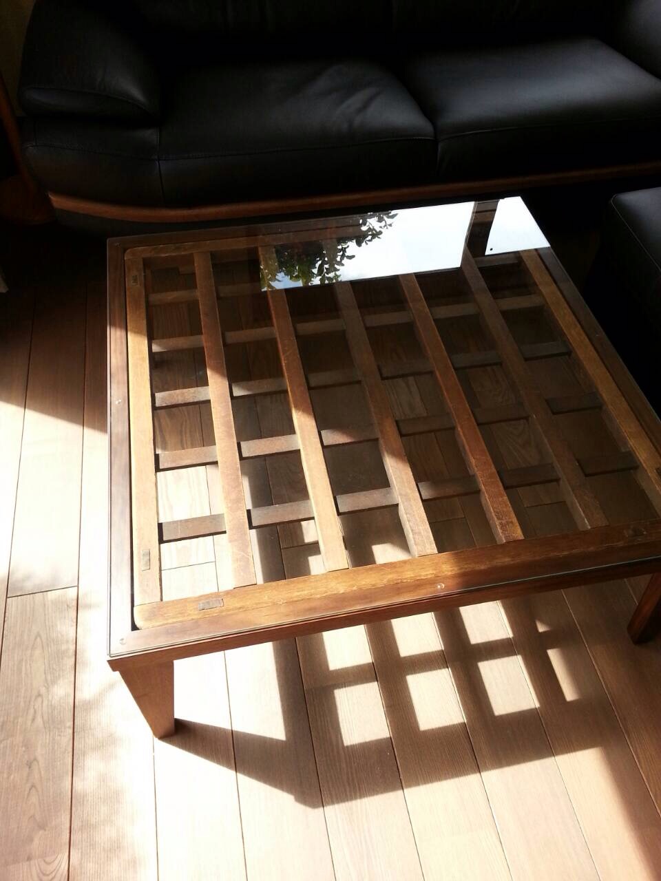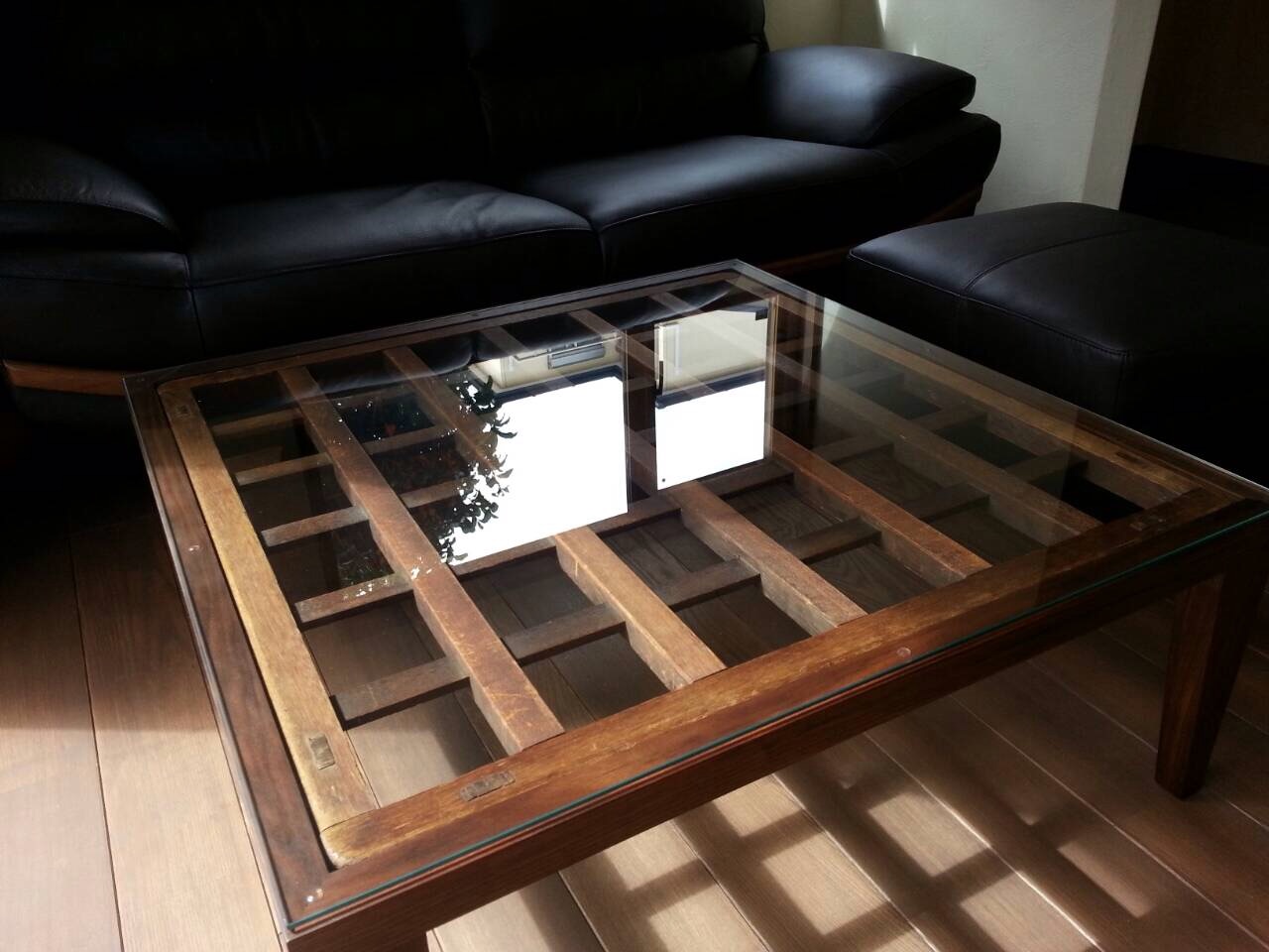 ウォールナット材で新たに四方枠と脚を製作~格子目天板~強化ガラスを載せてリメイク完成です!