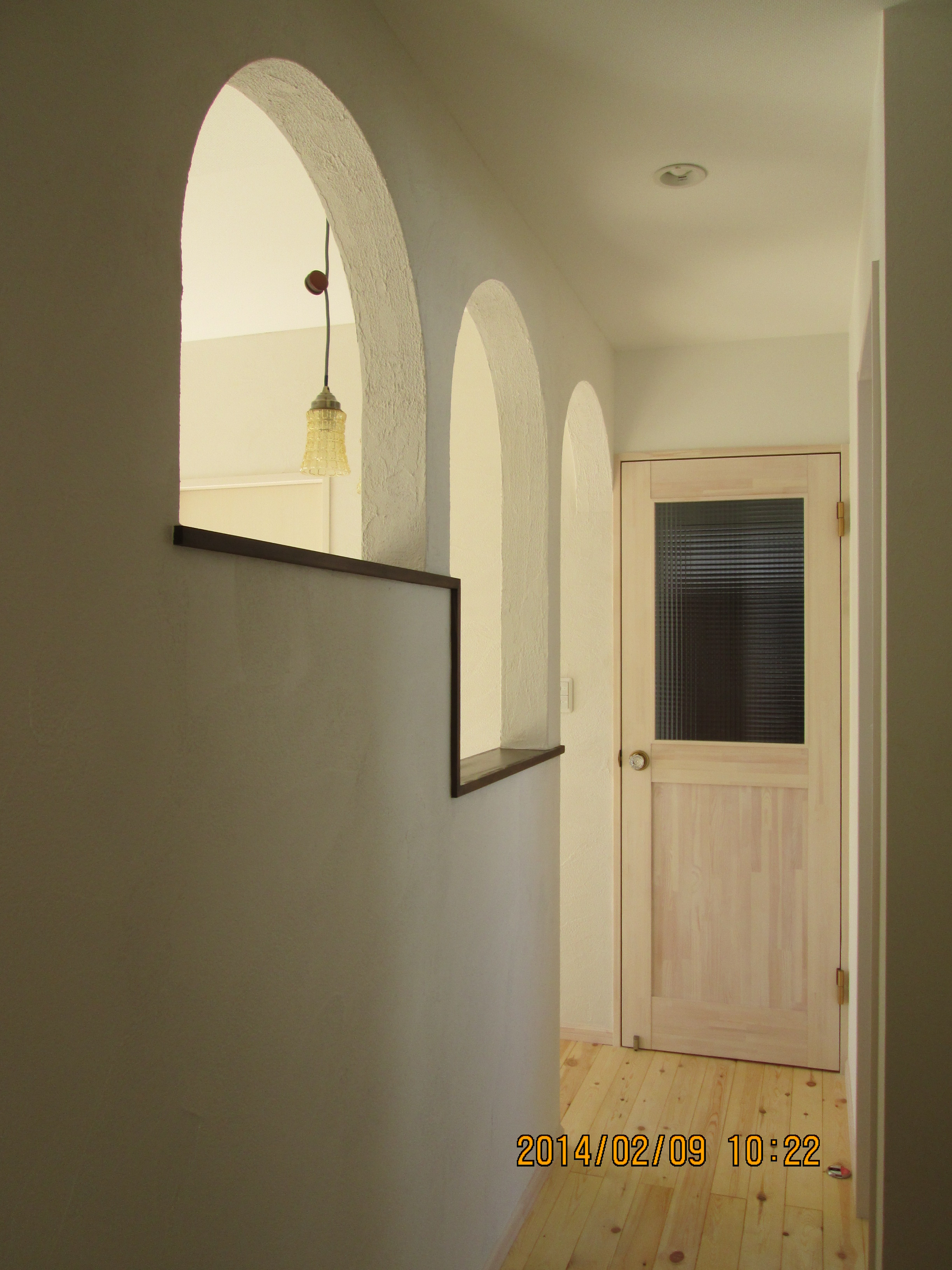 リビングの気配が感じられる、明るく広々とした廊下です。