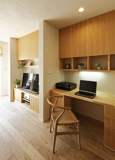 リビングのすぐそばで、パソコンをしたり、書類仕事などができるデスクは