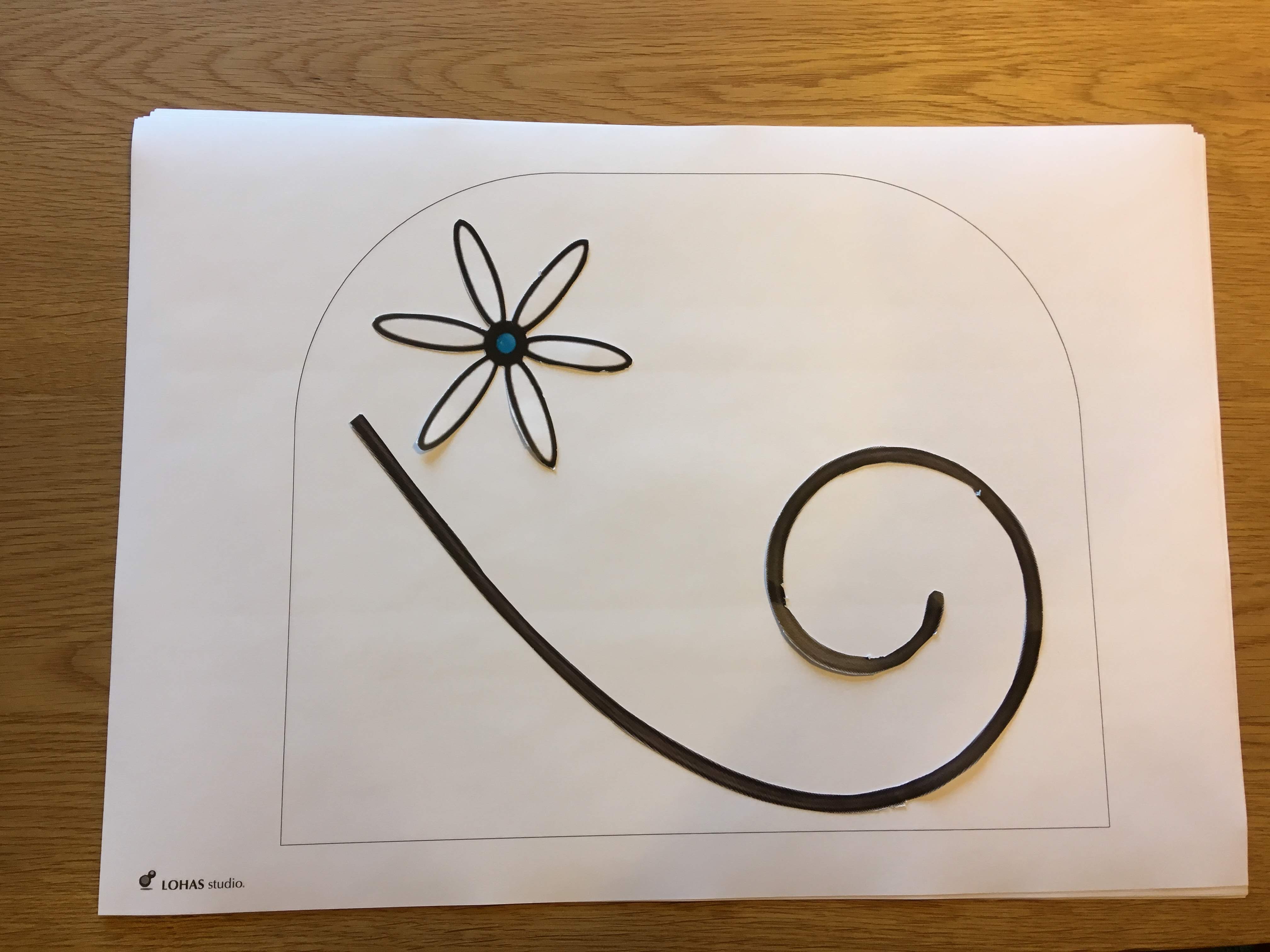 作成前に、打ち合わせをしたベースデザインだけ作り、あとはお施主様に楽しみながらガラスアクセサリーを配置してもらいました。