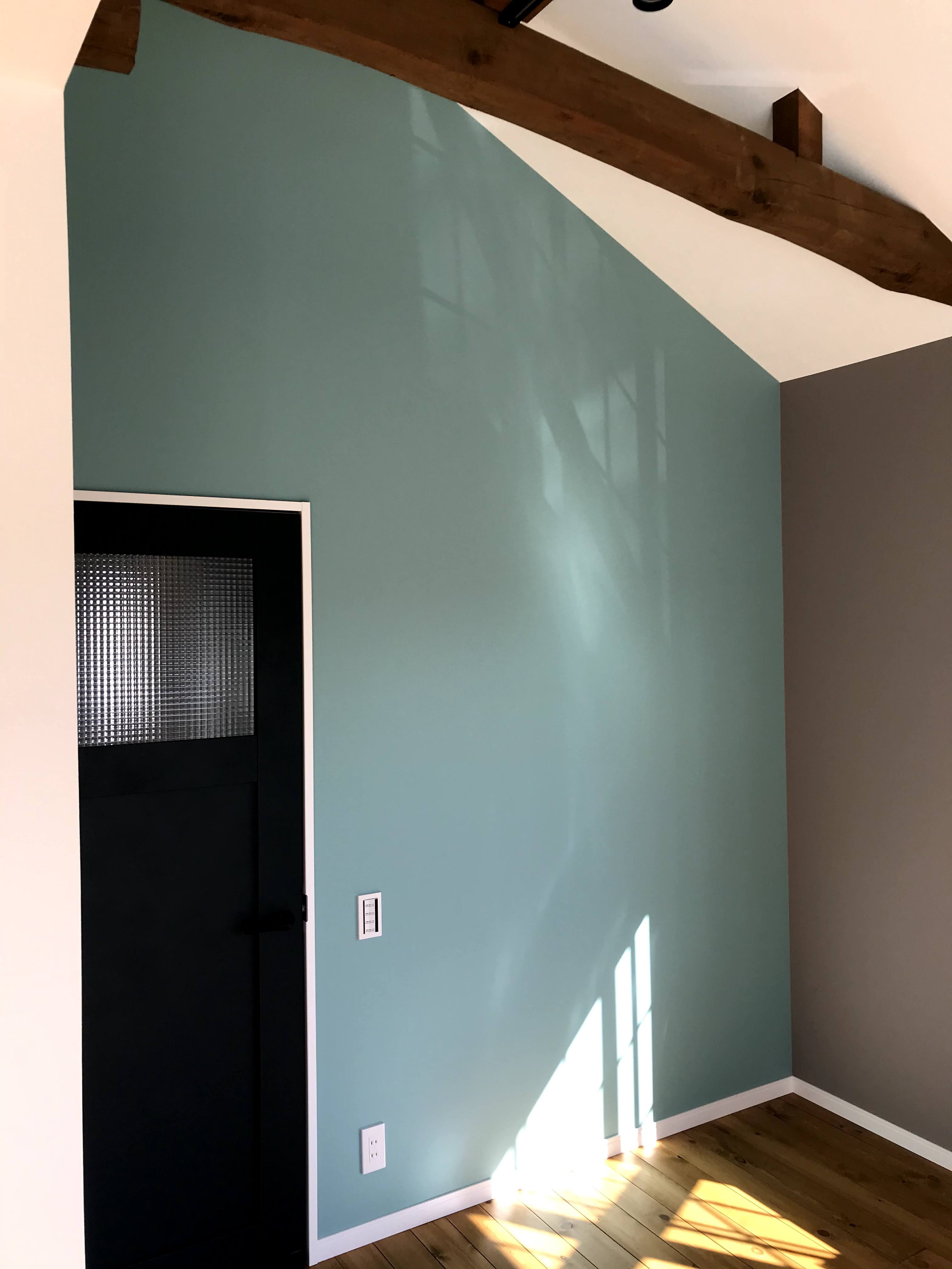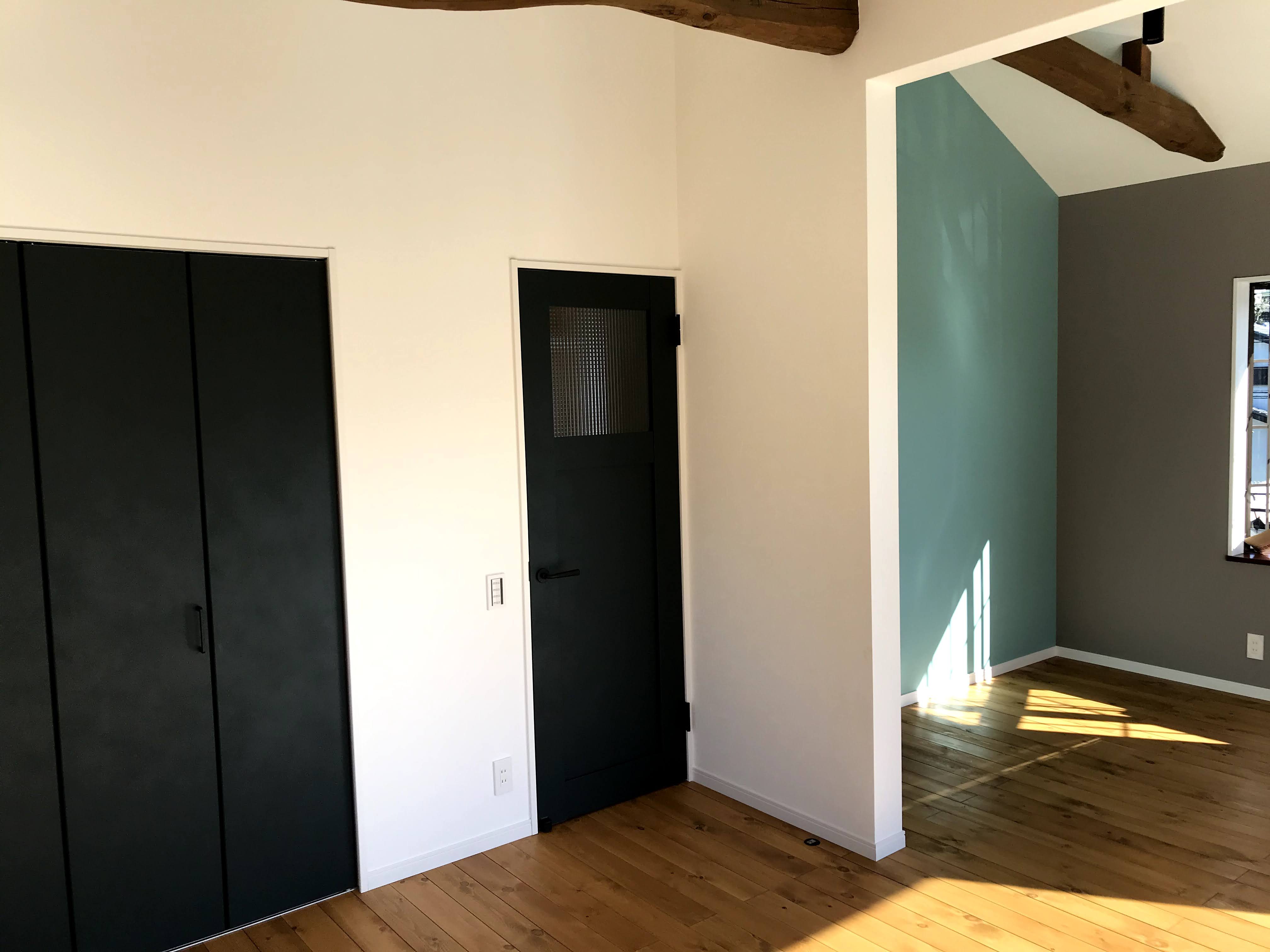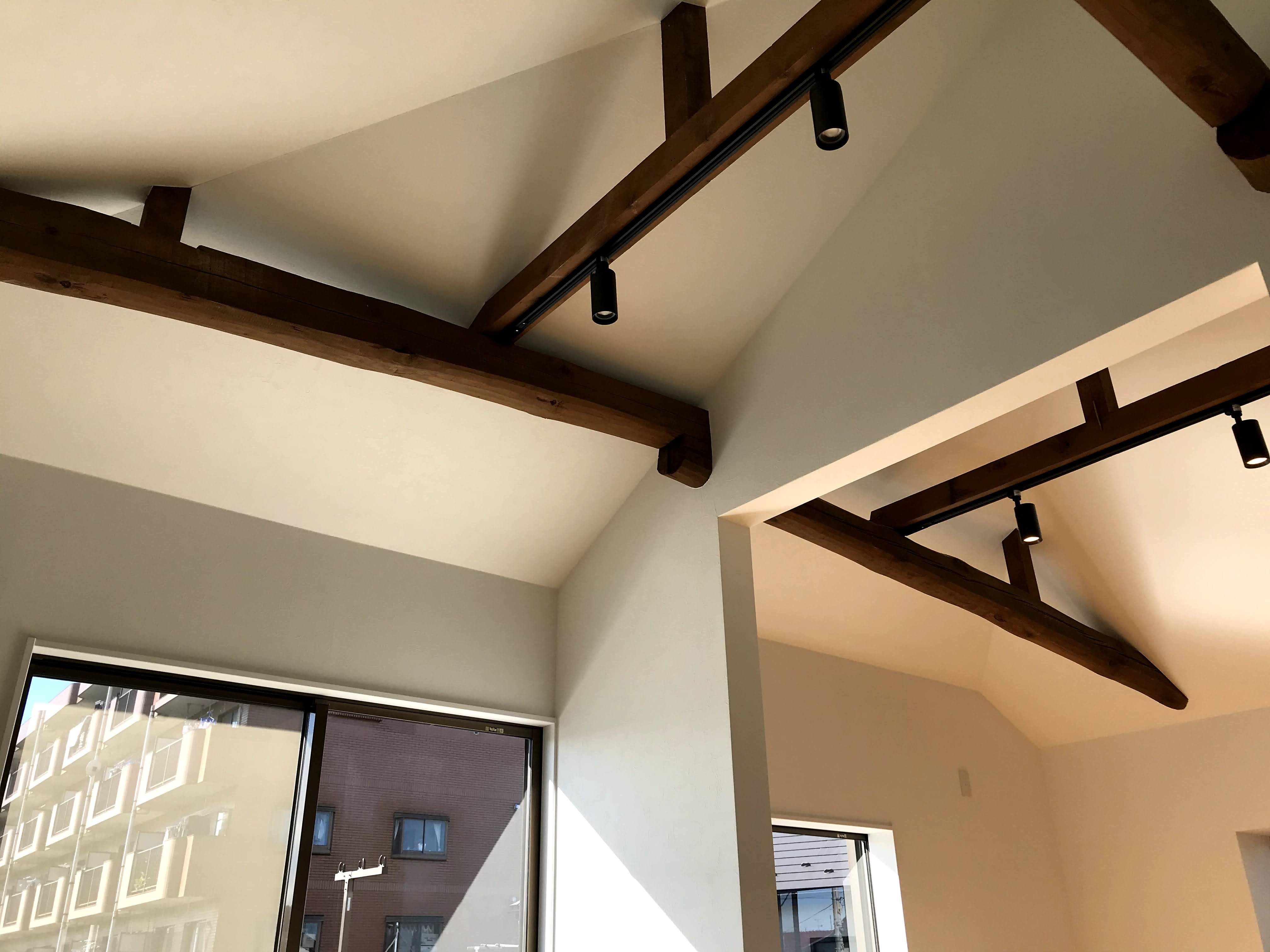既存の梁を見せるように仕上げた子供部屋の完成です。